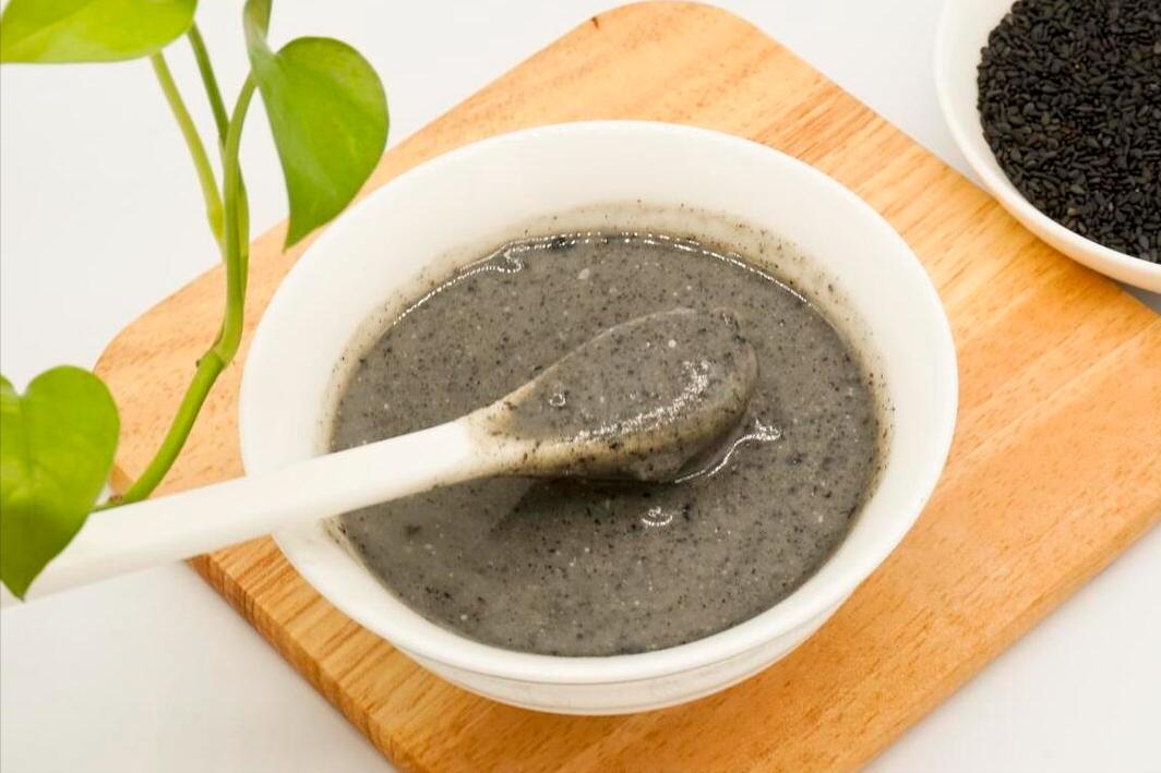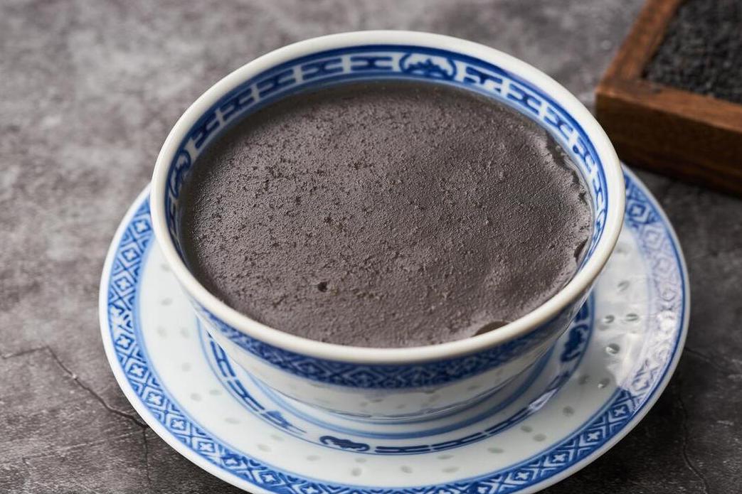 黑芝麻洗淨後瀝乾水分,然後下鍋炒熟盛出來,糯米粉也要下鍋炒熟。接下來將黑芝麻倒入破壁機,啓動機器打成末狀,打一會兒就用筷子攪拌幾下,打好後將糯米粉和冰糖都倒進去,混合均勻後盛出來即可,喝的時候用開水沖泡。