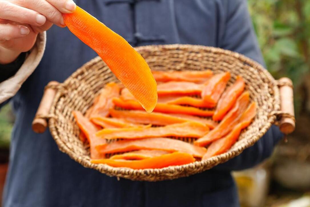 曬紅薯幹,要經過“3蒸3曬”,這樣曬出來狀態會更好,口感勁道不幹硬,這是第2個要點。曬好後嚐嚐看,是不是比超市賣的還要好喫,紅薯的香味超級足。