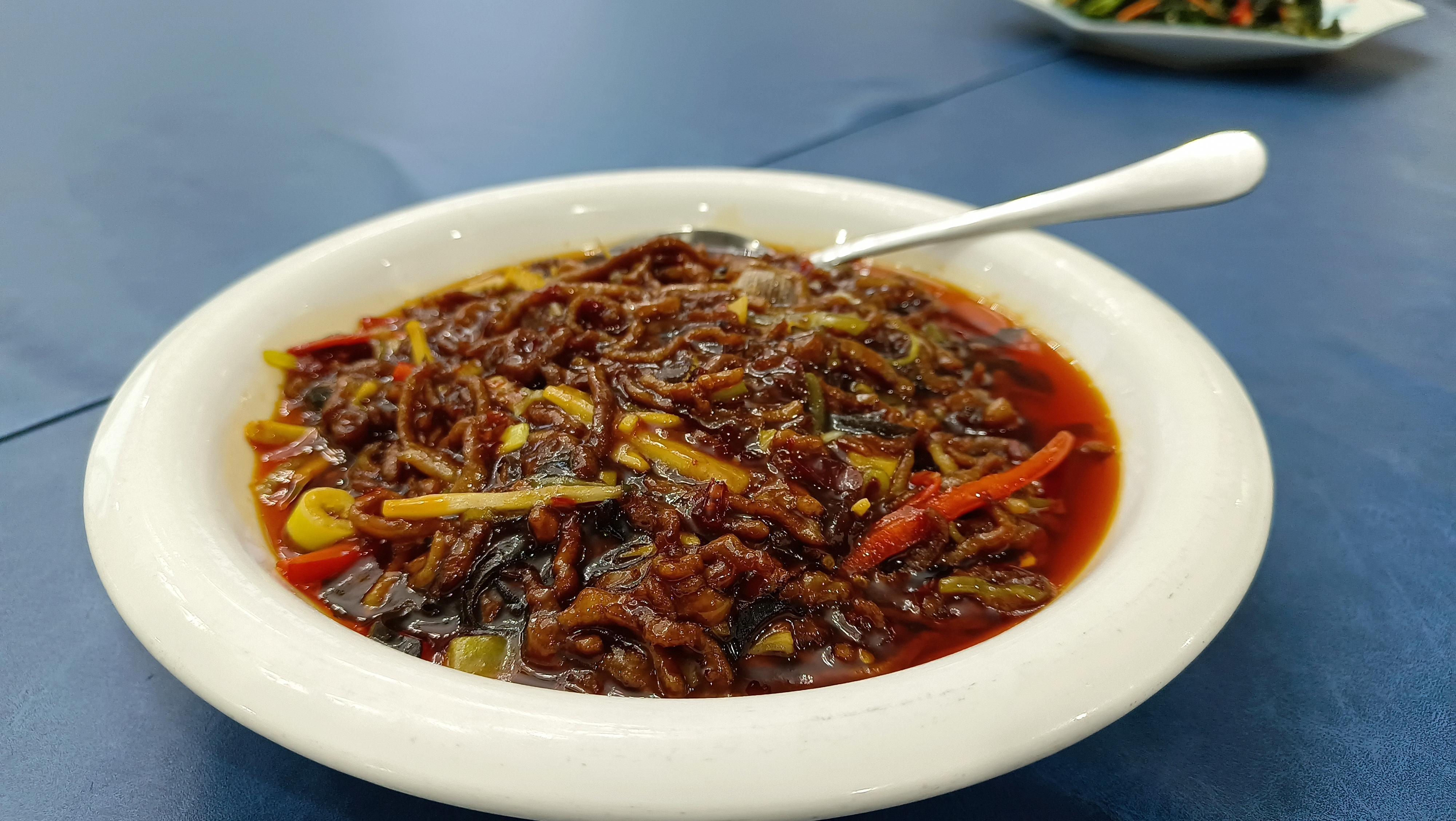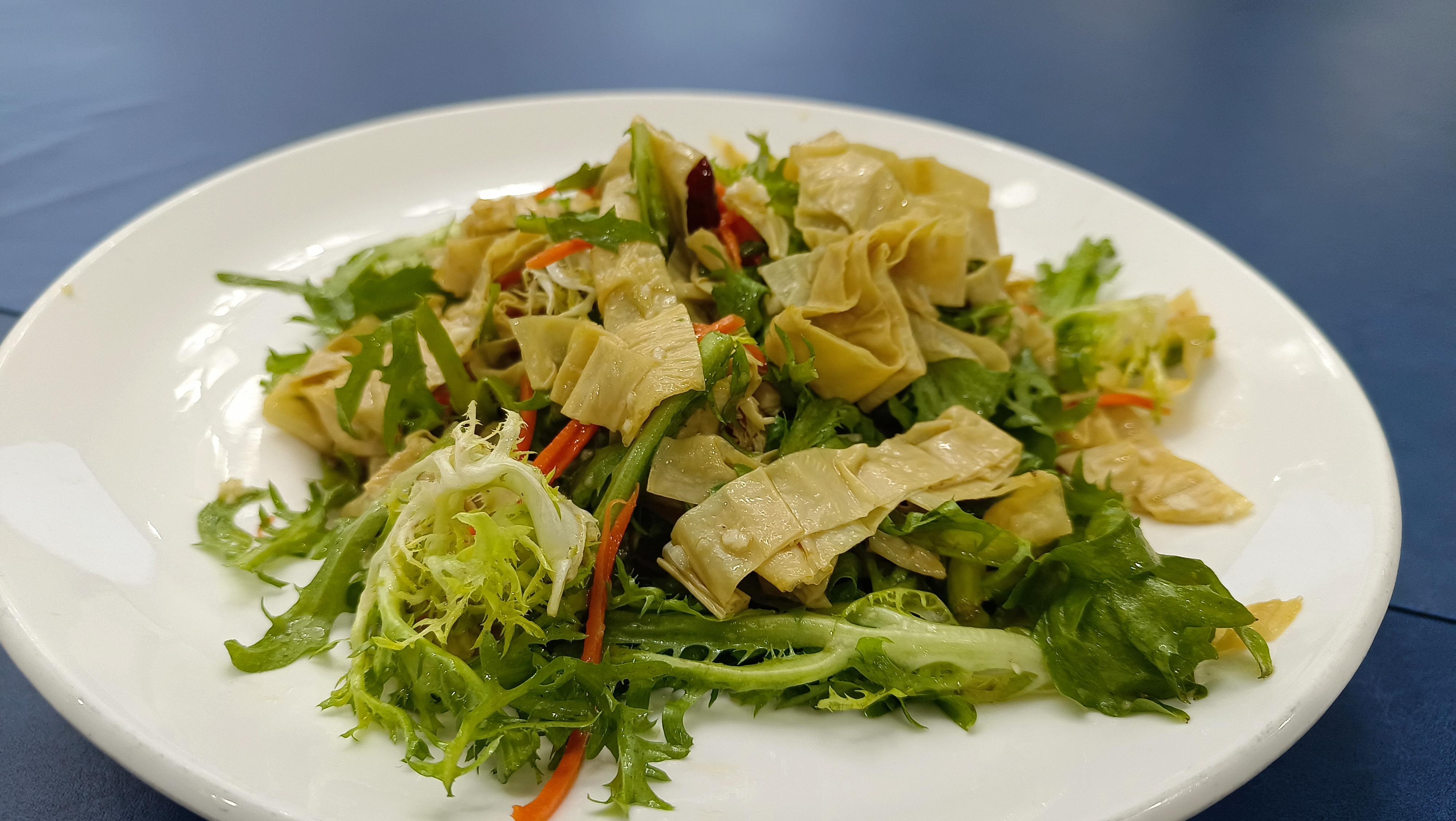 這是這個飯店的特色菜,雖然便宜但是味道清爽可口,很是受歡迎,每次來晚了都點不上呢。豆油皮是飯店自己做的鮮油豆皮,口感軟嫩,吸收了涼拌汁後入口清新開胃。