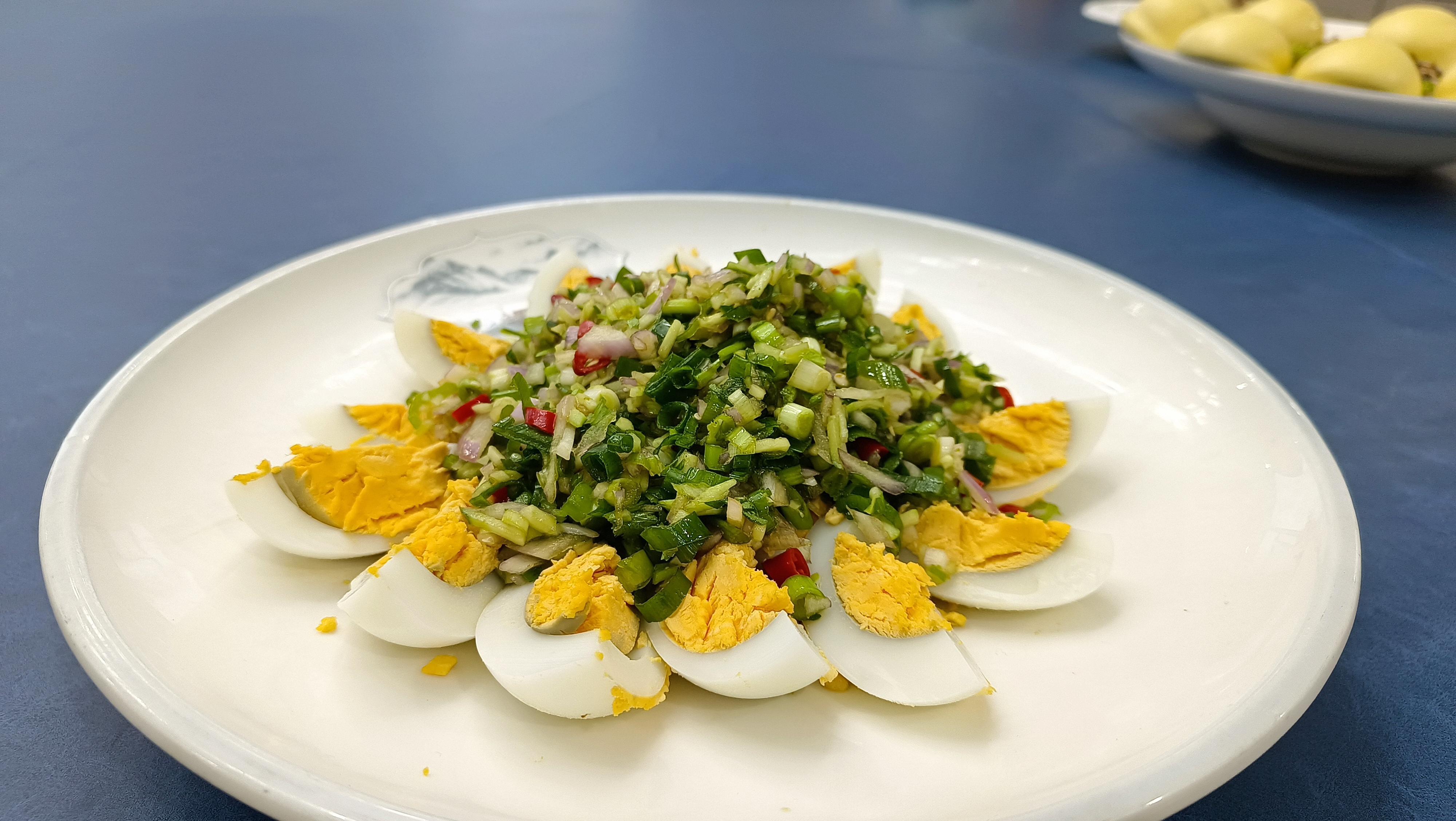 這是一道色香味俱全的涼拌菜,用香菜、辣椒、小蔥涼拌而成,喫起來香辣鮮美,清爽開胃,是一道下酒又下飯的解膩小菜。別看它不起眼,卻完勝大魚大肉,大家都搶着喫呢。