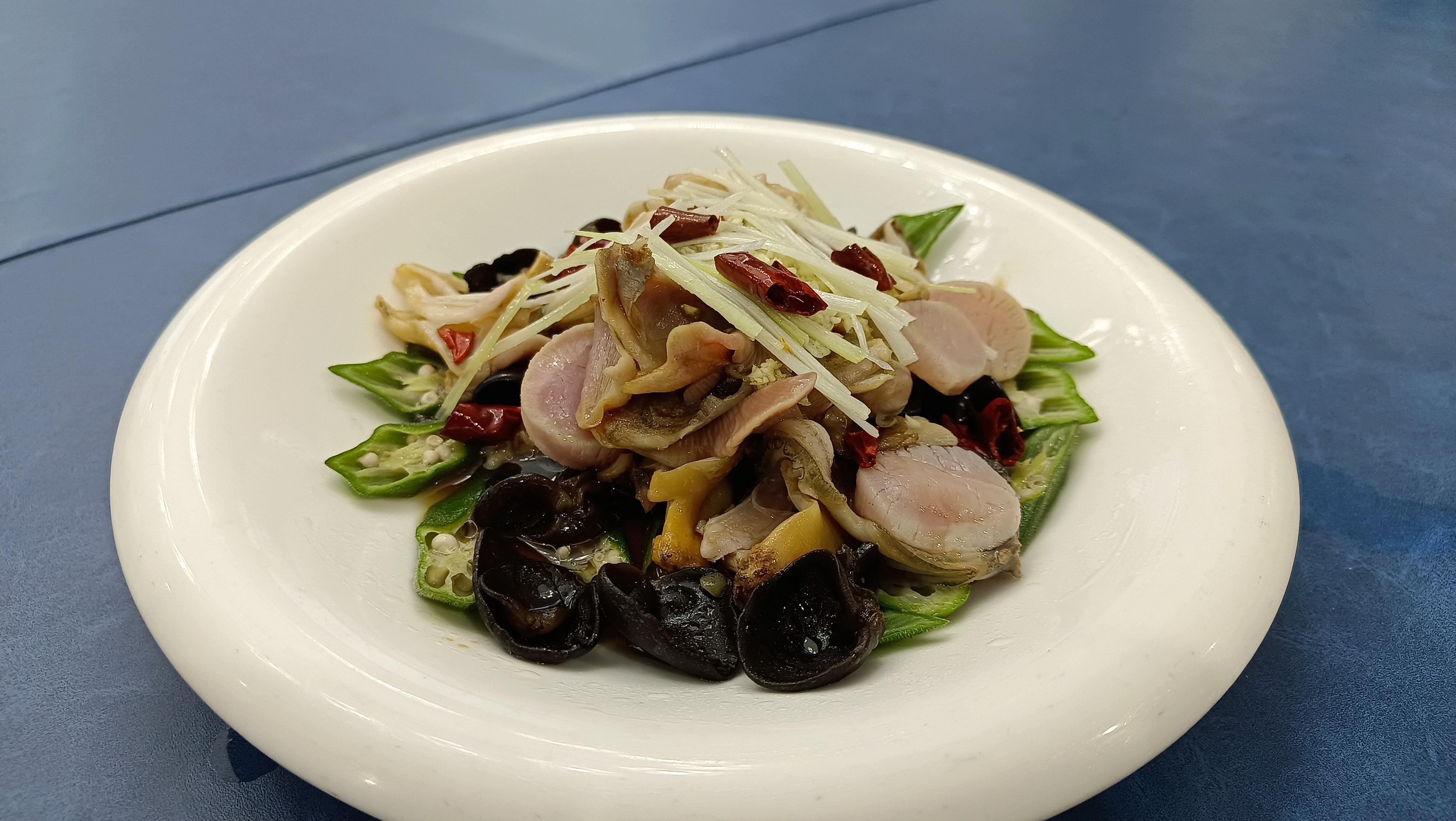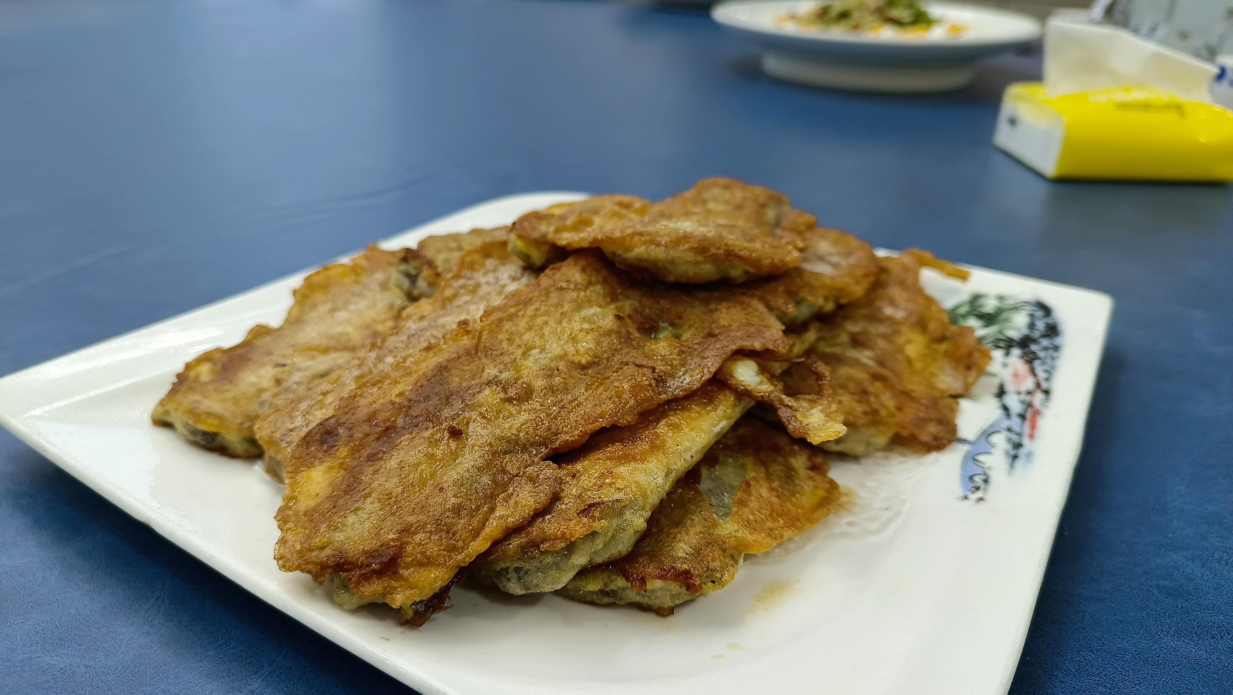 俗話說“靠山喫山,靠海喫海”,海邊人招待客人是肯定少不了海魚的,刀魚也叫帶魚,在我們這裏是最受歡迎的魚類之一,逢年過節家家都會或炸或煎上一盤帶魚。飯店做的帶魚是煎制的,外酥裏嫩,特別香!親家說很好喫,可惜因爲人多,每人只能喫一段,有點意猶未盡的感覺。
