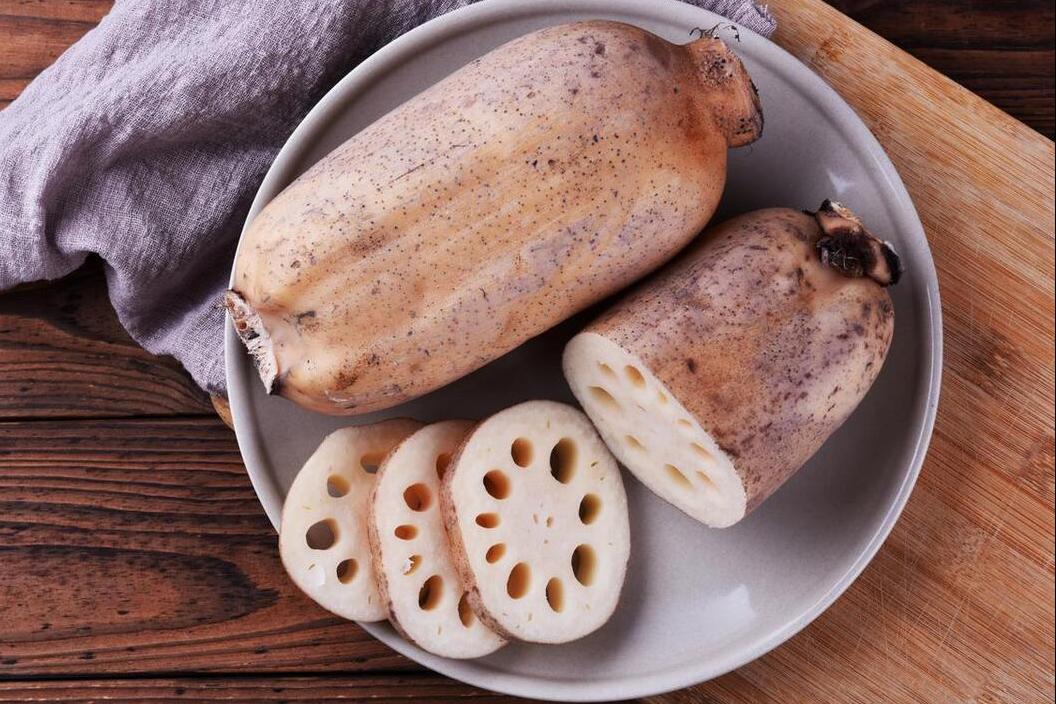 1、蓮藕削皮以後放在水中洗淨,然後把水分控幹之後,切成薄片,如果要夾肉餡的話,我們要兩片爲一組,中間不能切斷。