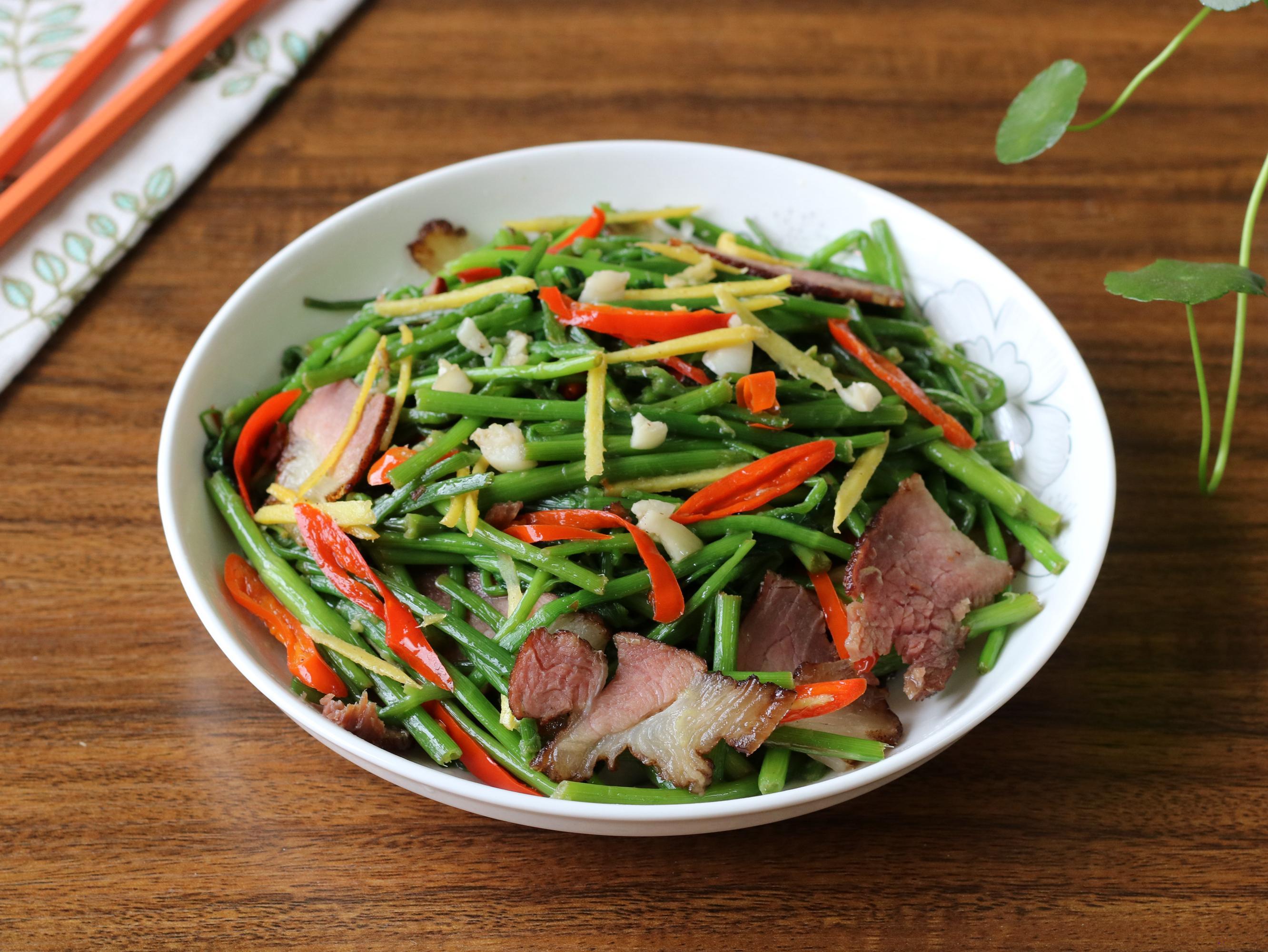 下面就給大家分享一下鴨腳板菜炒臘肉的做法,需要準備的食材有:鴨腳板菜 一小把,臘肉 適量,生薑 少許,大蒜 2瓣,小米椒 2個,食用油 適量,鹽 適量,