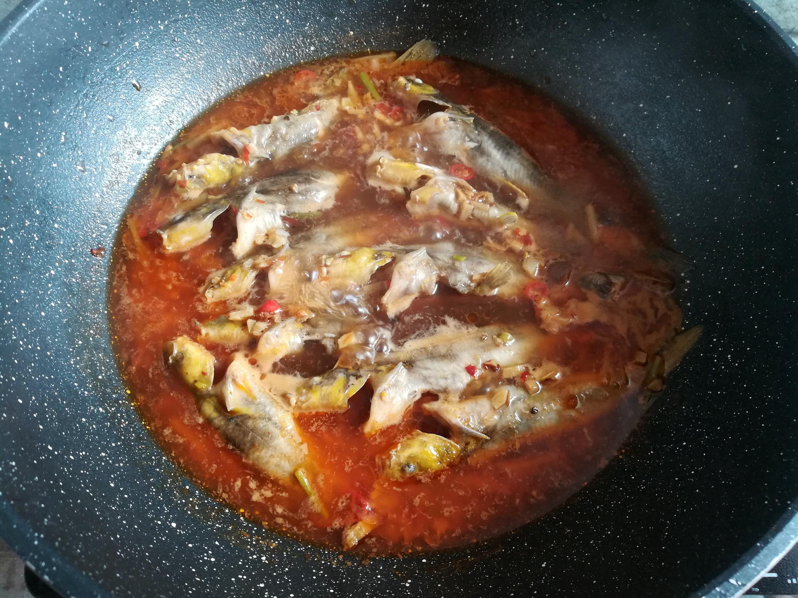 加入黃骨魚大火煮開再煮10分鐘,把魚肉徹底煮熟。