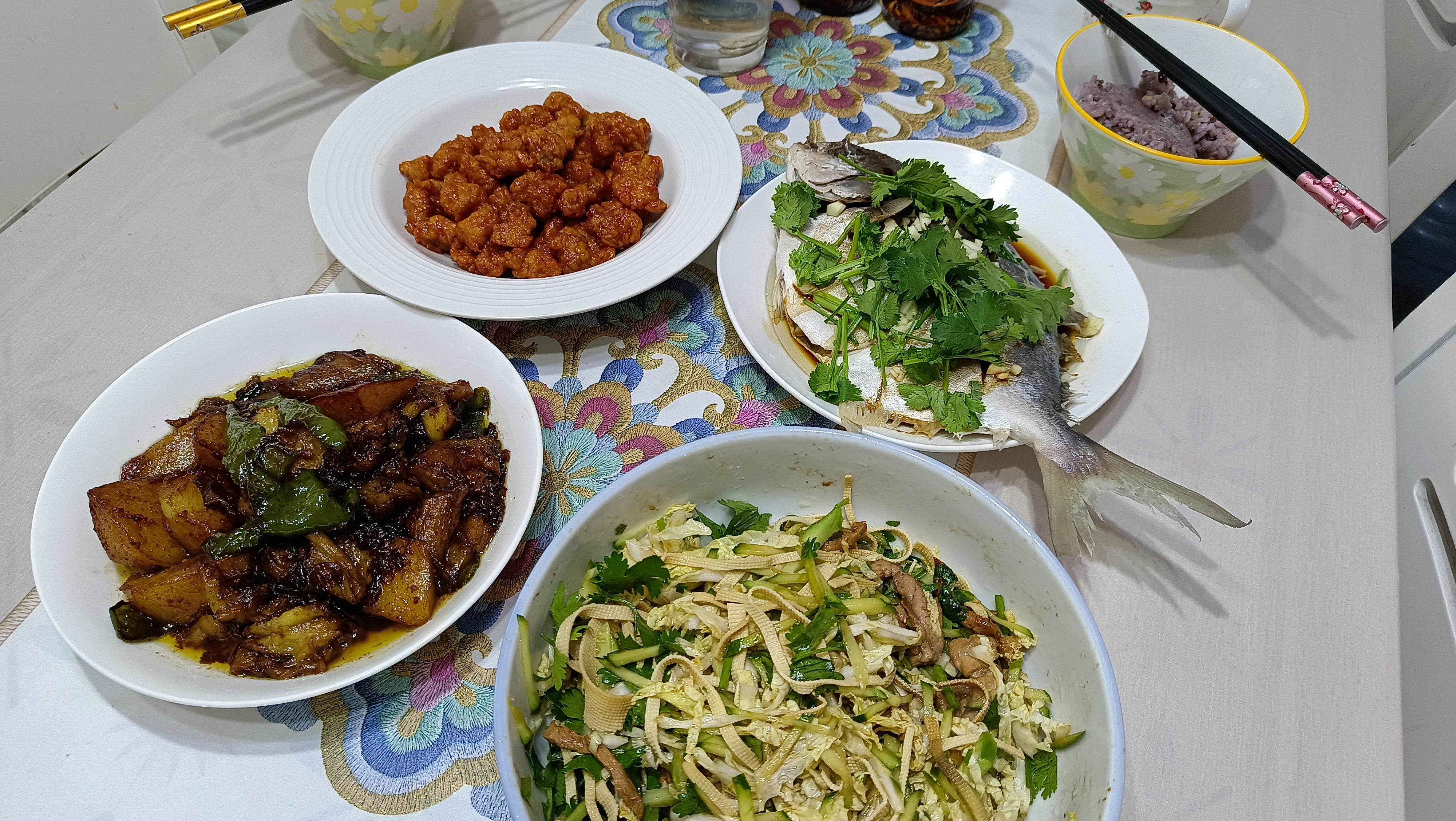 平時因爲上班忙做飯都是糊弄,也只有週末纔有時間做頓象樣的飯菜,曬曬我家這個週末的晚餐,三個人做了四道菜,花錢少喫的好,其實,還真是在家喫飯更划算~