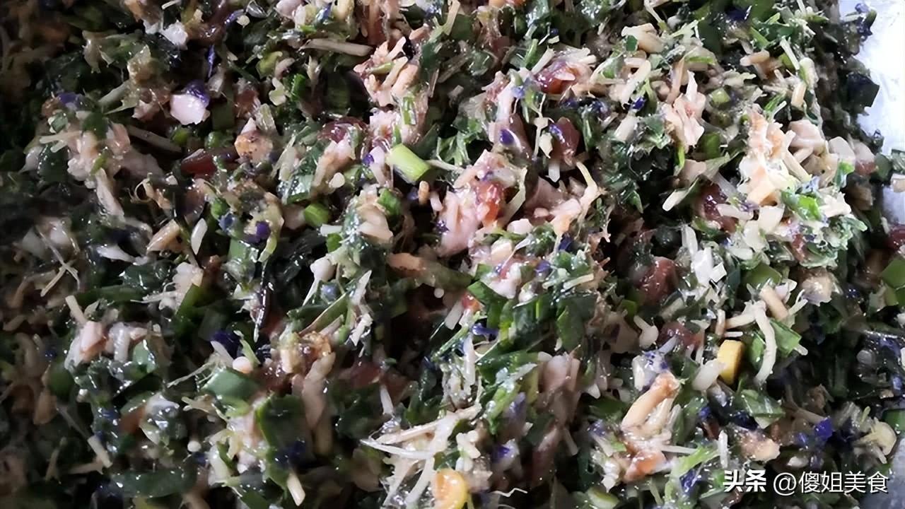 焯水後放冷水中過涼,擠淨水分,切碎後,加入五花肉,鹽,食用油,香油,調成餃子餡,用它包餃子喫味道非常鮮美,開花了也沒有關係,可以一起製作。