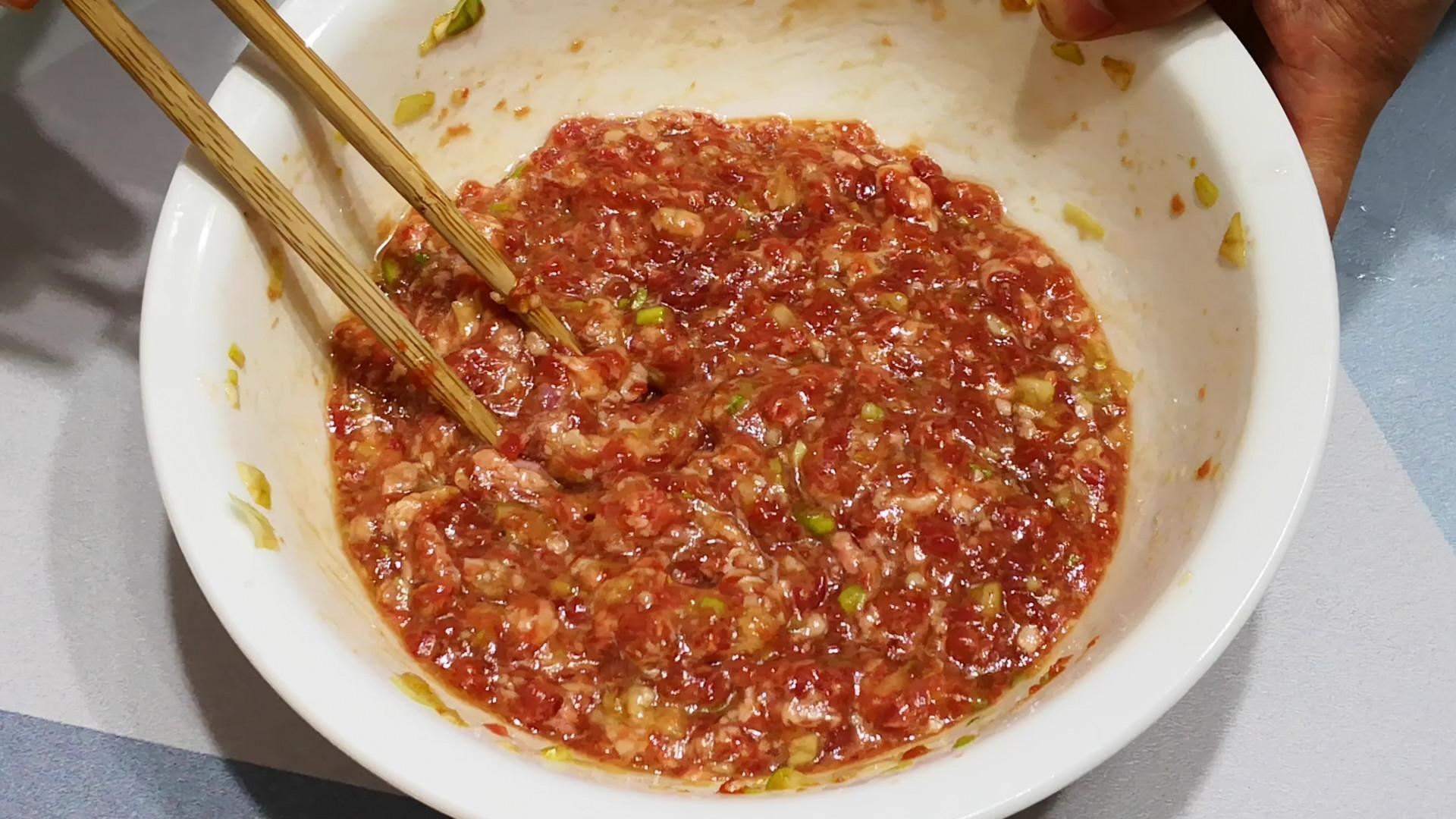 2、新鮮的豬肉剁成肉餡,一般建議選用五花肉,因爲青菜喜大油,接下來的任務就是調肉餡:剁好的肉餡中分別加入一勺鹽、一勺蠔油、適量的胡椒粉和生抽,接着加入蔥花和薑末,再打入一個雞蛋,然後順着一個方向不停地攪拌,將肉餡充分攪拌至上勁後,放到冰箱冷藏醃製15分鐘。這樣調出的肉餡鮮嫩又多汁,香而不膩,不管是用來包餃子還是包包子,都特別鮮香美味!