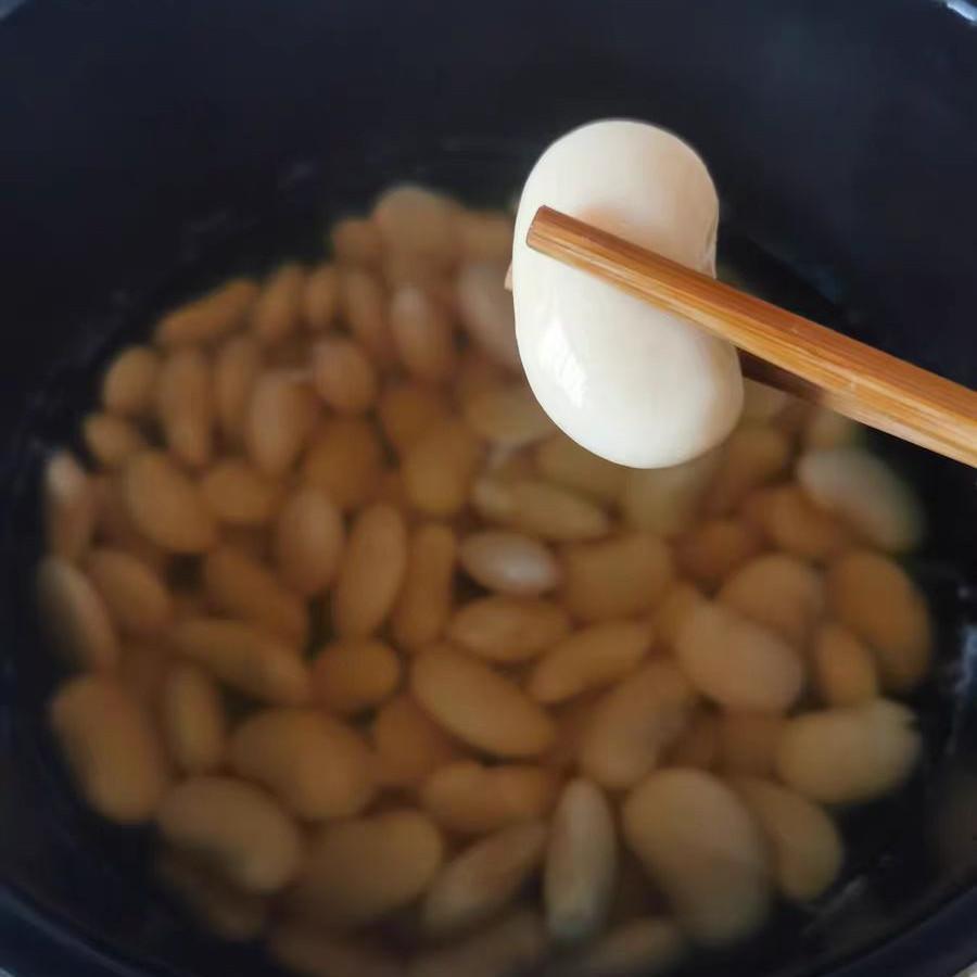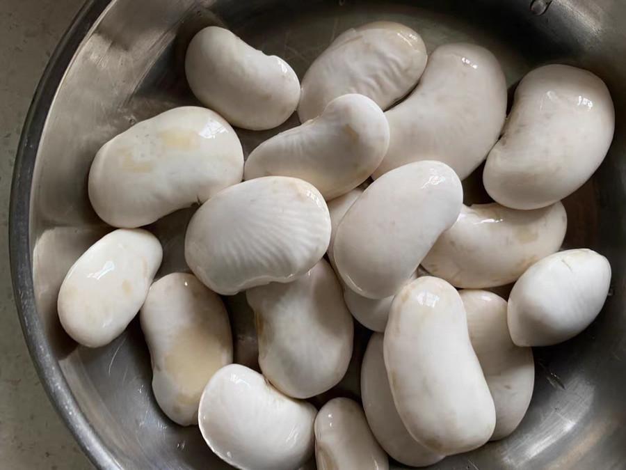 也正因爲我們購買的白芸豆是乾的,質地較硬,所以做之前要先將其煮熟煮軟: