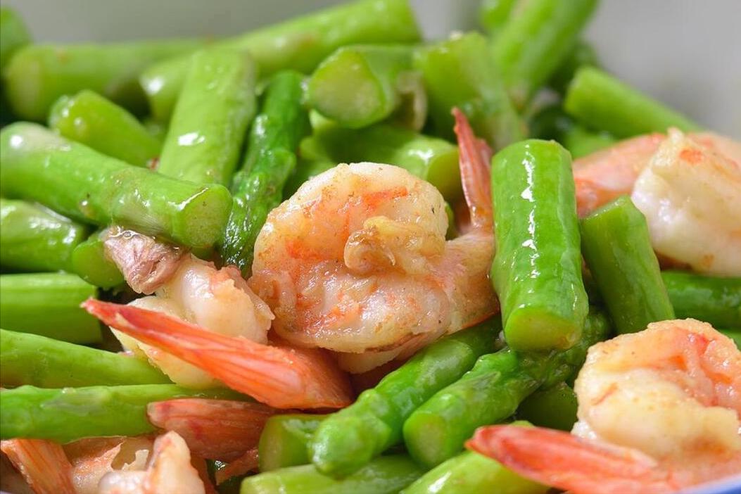 用到:蘆筍、蝦仁、蔥姜、鹽、雞精、白胡椒粉、料酒、食用油