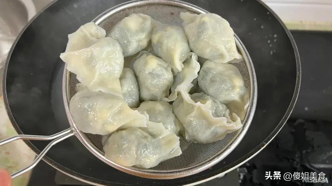 4、煮餃子可是門學問哦!素餡餃子煮兩次開鍋,肉餡餃子煮三次開鍋,中途還要記得倒點冷水,等到餃子浮起來就表示熟啦!豬毛菜餃子出鍋了,我告訴你,這個素餡餃子比韭菜餃子還好喫!現在正是豬毛菜最嫩的時候,千萬別錯過這美味哦,錯過了可就太可惜啦!