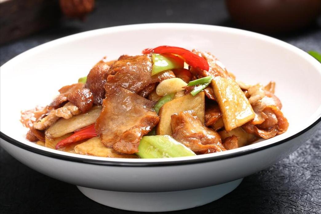 用到:杏鮑菇、五花肉、澱粉、姜蒜、杭椒、生抽、鹽、味精、料酒、食用油