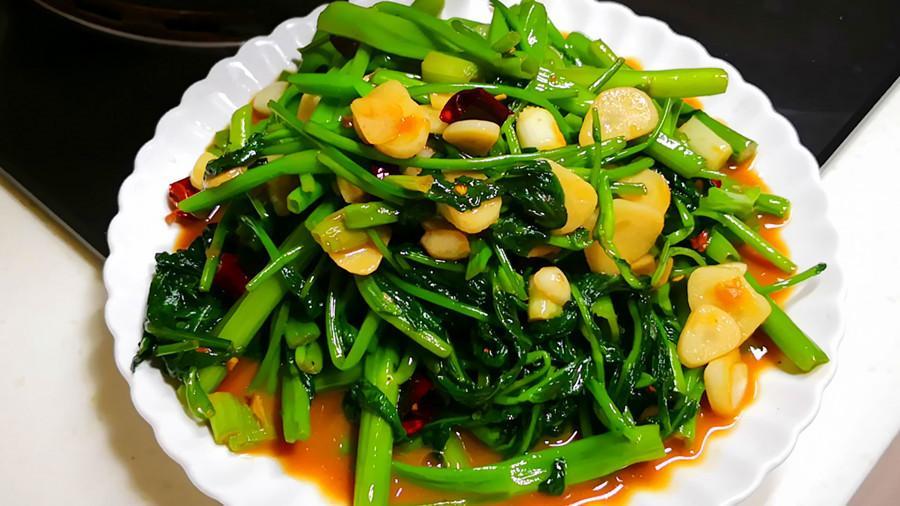 空心菜因爲其莖的中間有相通的、空的,所以也叫“通心菜”,是夏天的應季蔬菜,不僅含鉀量高,而且還是高鈣、高纖維的食物,鈣的含量不輸於牛奶,另外,空心菜還含有豐富的維生素和膳食纖維,夏季常喫有利於潤腸通便,具有通便排毒、清熱祛溼、健脾胃等功效。