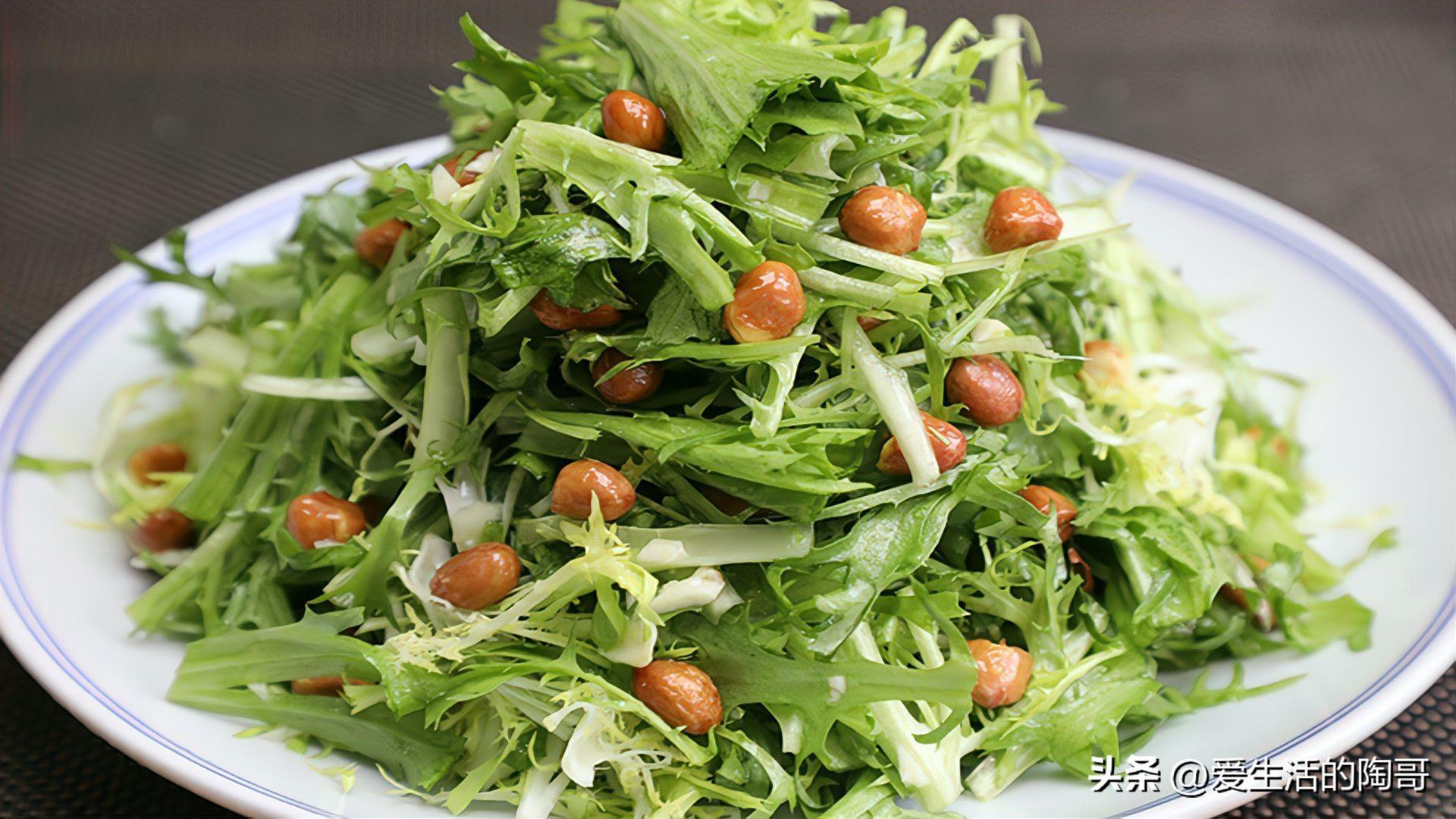 食材;苦菊適量,洋蔥1個,蔥蒜,鹽,醋,花生米