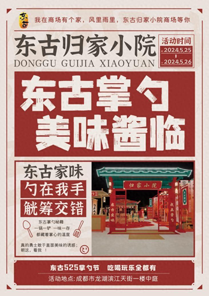 或許你體驗過在商場逛小院嗎?或許你嘗過醬油味兒的咖啡嗎?東古525掌勺節驚喜“醬”臨成都,全體掌勺人,東古邀您“歸家掌勺”啦!5月25日至5月26日來成都龍湖濱江天街,不一般的“歸家”體驗這裏全都有!