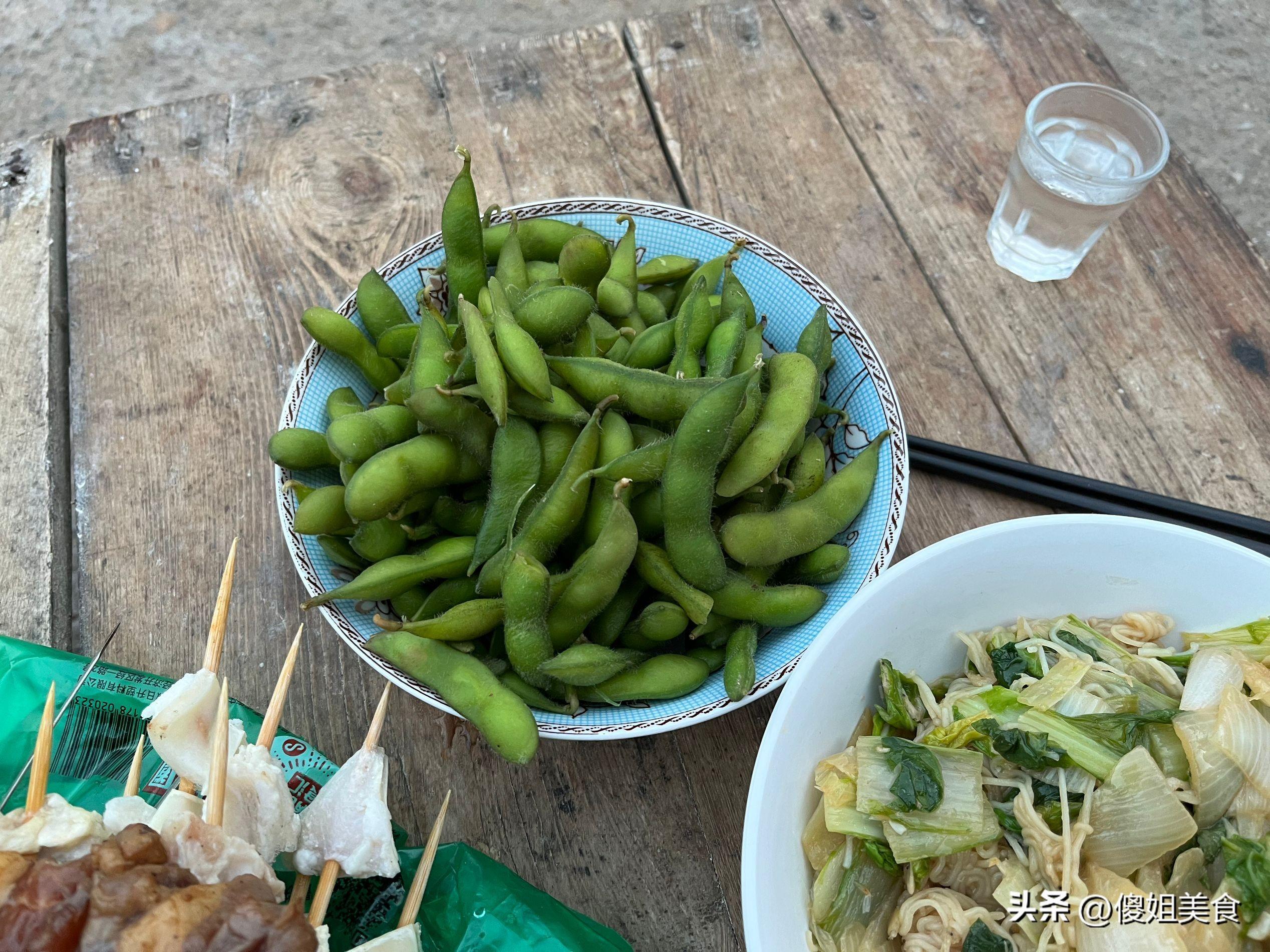 老爸自己還煮了個毛豆,這標配絕了,毛豆自己煮的,好喫又入味,再來杯白酒,那是真滋潤啊。