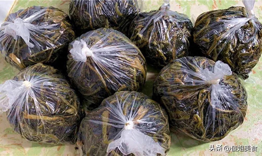 梅乾菜變色後放入大盆中,倒入多一些的食鹽搓均勻,就可以裝袋密封保存了,也可以繼續晾曬,直至徹底曬乾。我覺得這種口感非常好,喫起來更有嚼勁。密封好以後放入冰箱保鮮保存即可,隨喫隨取,特別省事。喫的時候把表面的鹽漬清洗乾淨,浸泡一會兒,去除鹹味就可以了。用它做梅乾菜餅、炒肉,或者直接蒸着喫,簡直不要太香了。不起眼的葉子沒想到能變成如此美味的美食,越嚼越香。