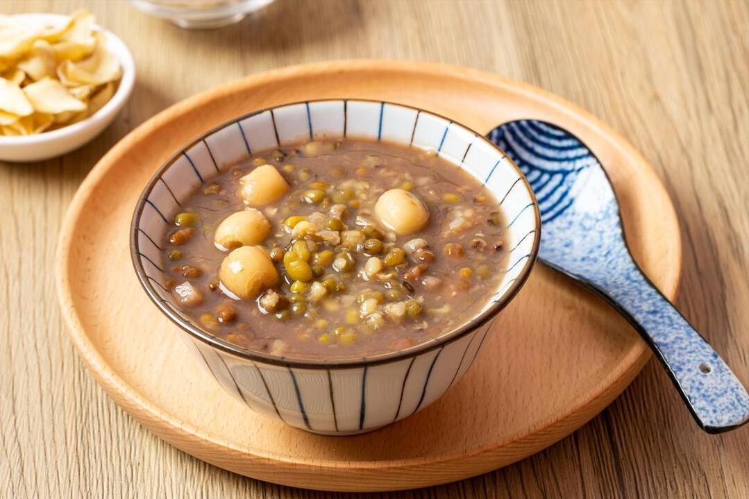 綠豆和蓮子淘洗乾淨,泡在水中1個小時以上,到時間後一起倒在鍋子裏,然後添上適量的清水,將蓋子蓋上開始煮。大火煮開,小火燉上1個小時左右,直到綠豆軟爛,最後可以放上幾塊冰糖調味,不喜歡喝甜的就不放,關火晾涼後開喝。