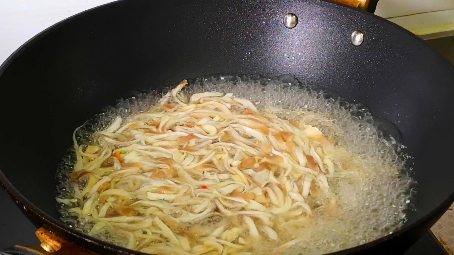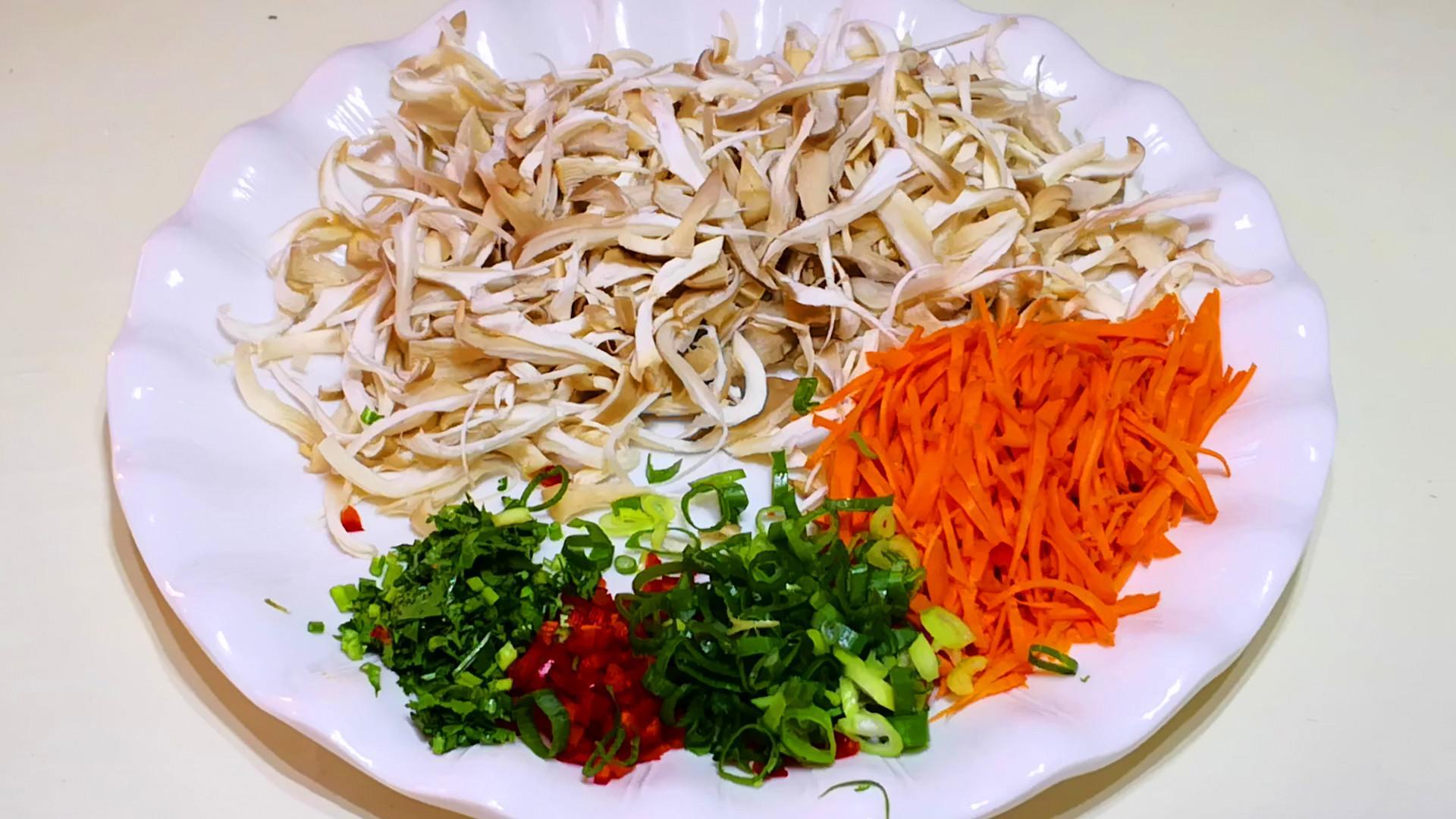 平菇因爲前面有很多的褶皺,所以不容易清洗乾淨,爲了喫得放心,做之前要用鹽水浸泡片刻、消毒殺菌。