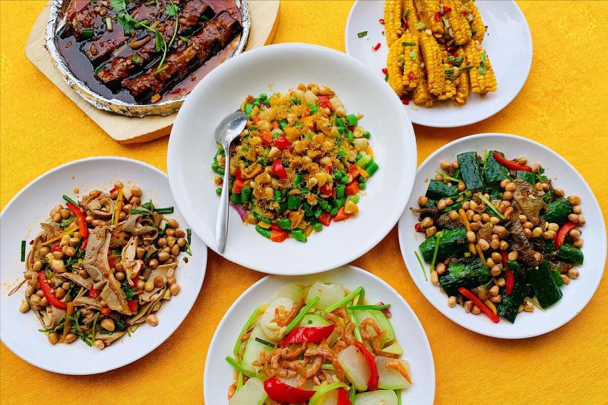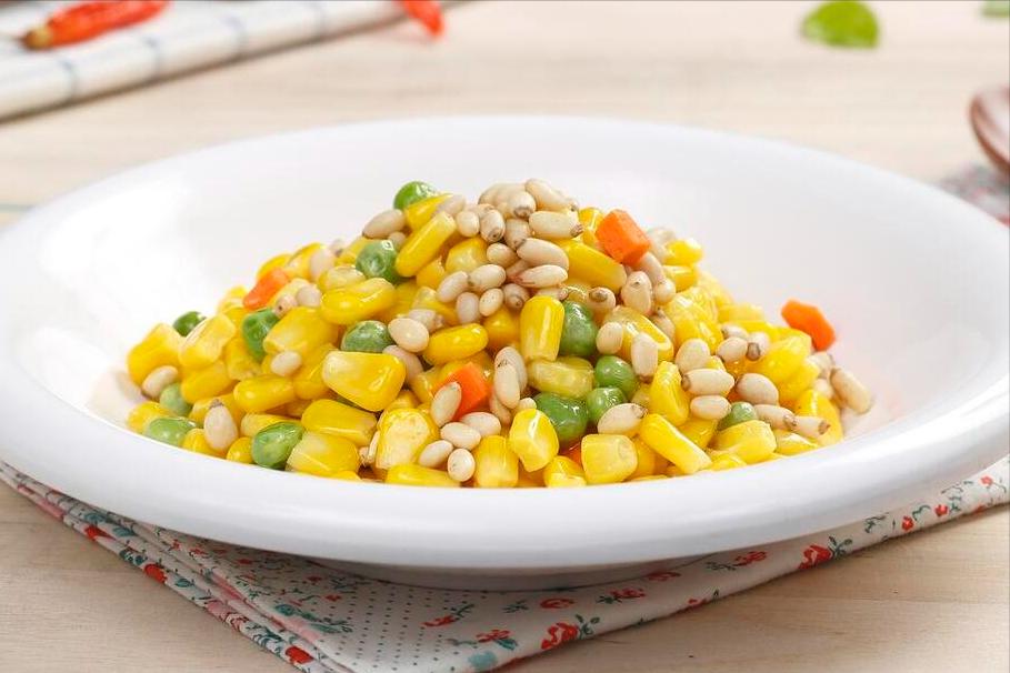 材料:玉米、胡蘿蔔、黃瓜、松子、鹽、白糖、食用油