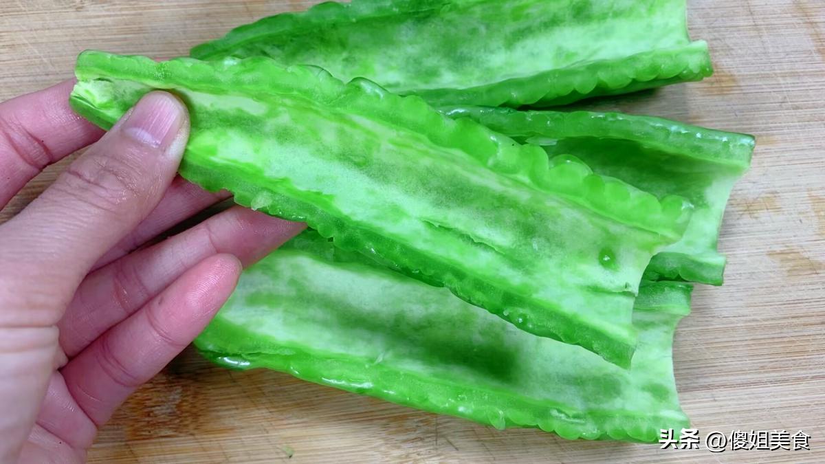 做法步驟:將苦瓜洗淨,對半切開,用勺子挖去內瓤和白色的部分,這部分是苦味的主要來源,可以根據個人口味適當保留。將處理好的苦瓜切成薄片,越薄越好,這樣苦瓜的口感會更加清脆。