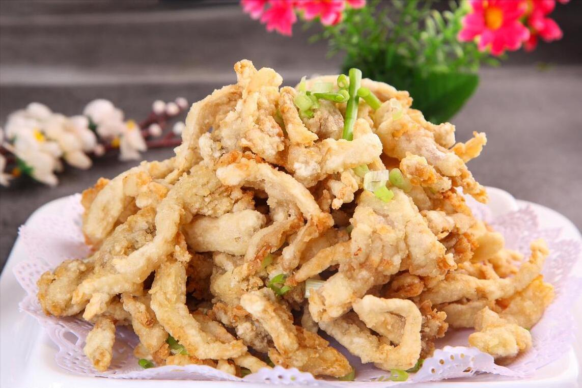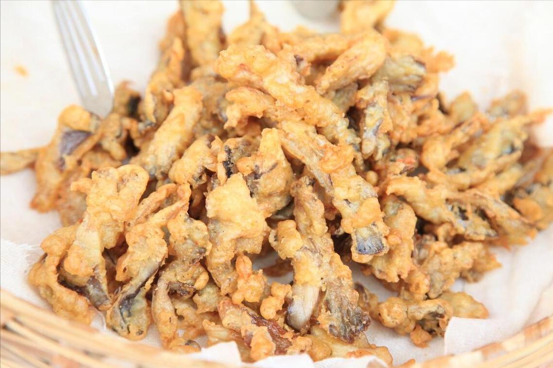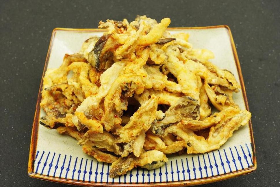 3、加進去以後再往裏面倒入少許清水,一邊倒水一邊攪拌,直至攪拌成麪糊,就可以將蘑菇倒進去了,不停攪拌,徹底拌勻。下面往鍋內倒入多一點的油,待其燒熱後下入蘑菇,一條一條的下進去,炸到金黃後撈出來,隨後復炸一次,炸到金黃焦香,出鍋趁熱開喫。