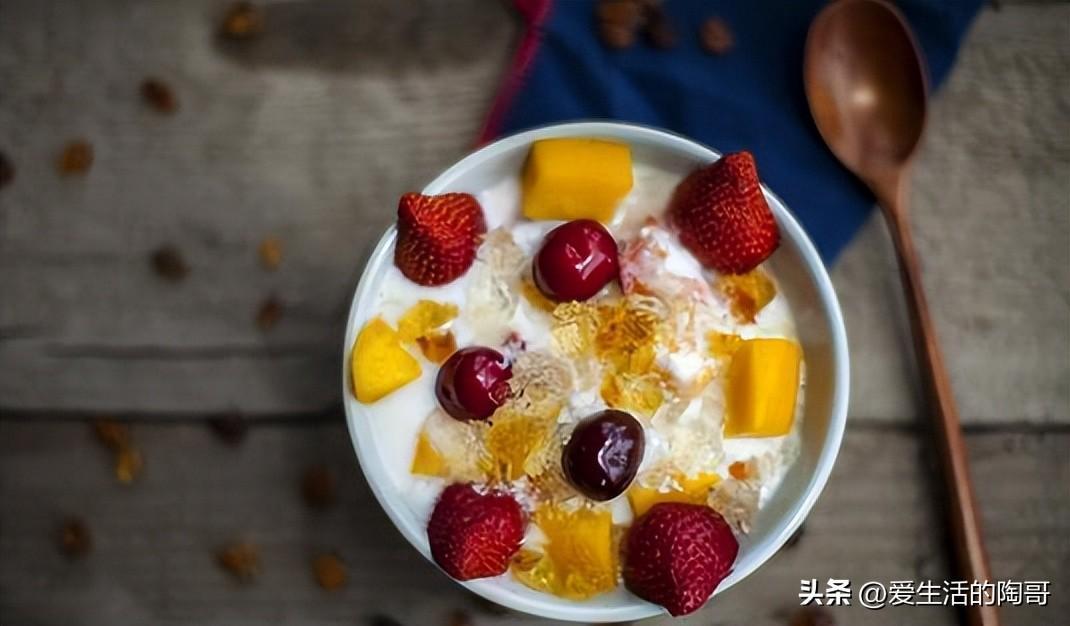 3做沙拉。桃膠泡發後,與蔬菜或者水果一起拌着喫,口感清爽可口。