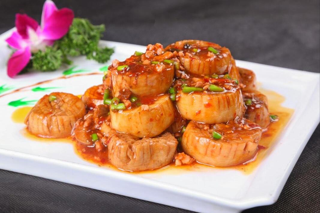 食材:杏鮑菇、蔥蒜、生抽、蠔油、鹽、雞精、豆瓣醬、食用油