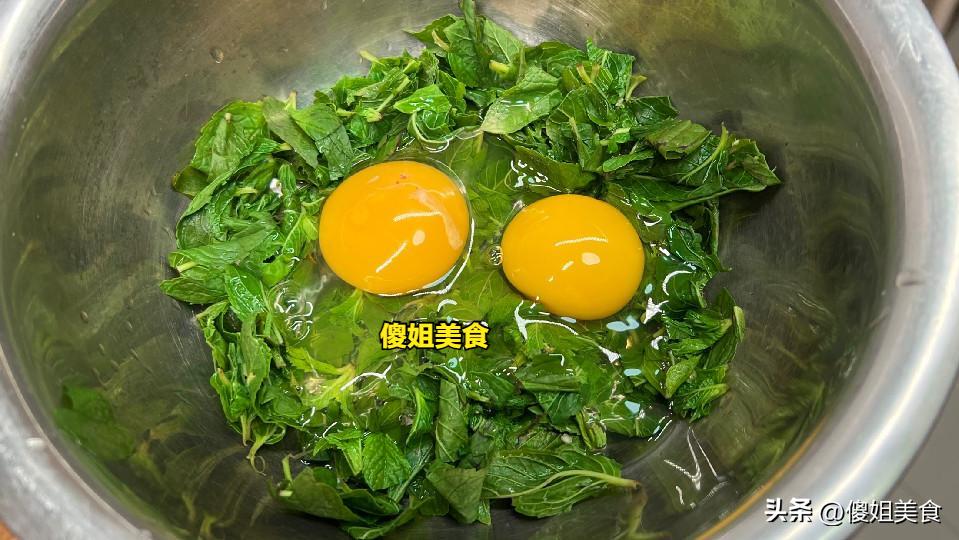 材料:新鮮薄荷葉一把、雞蛋3個、鹽適量、食用油適量。