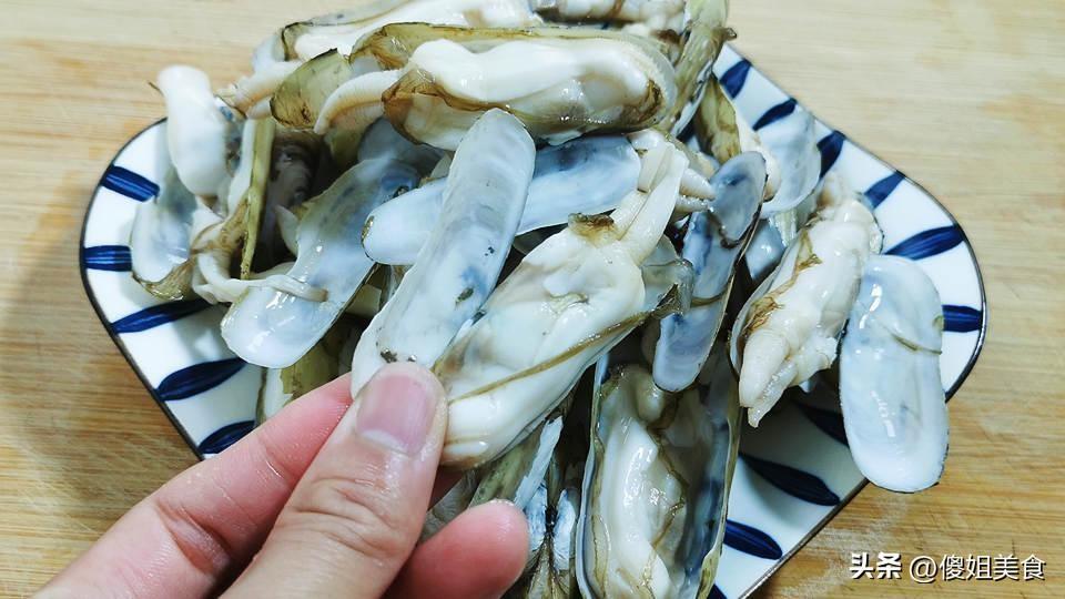 2、焯水時間要掌握好:蟶子肉焯水時間不宜過長,否則肉質會變老。看到蟶子肉稍微張口就可以撈出了。