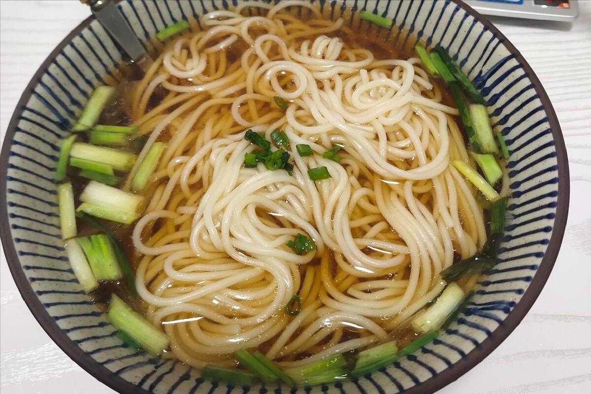 食材:麪條、蔥花、鹽、白糖、胡椒粉、生抽、老抽、香油