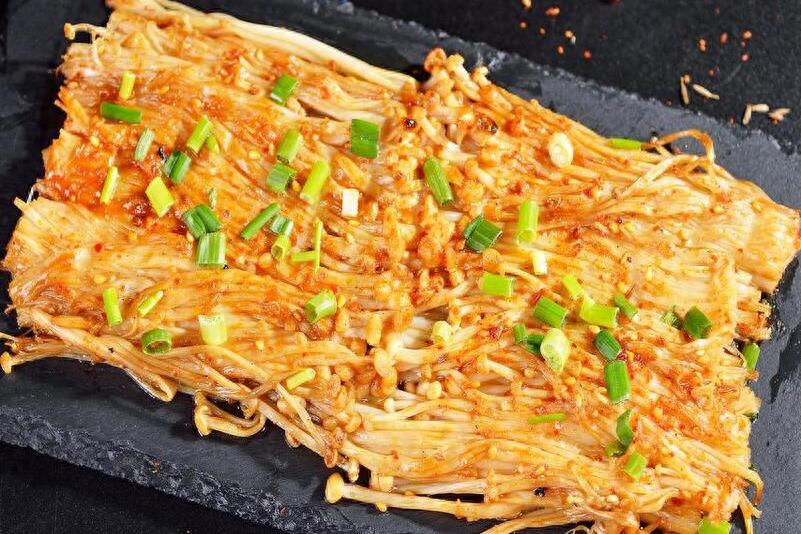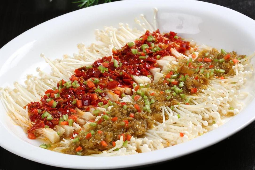 食材:金針菇、粉絲、大蒜、小米辣、鹽、雞精、白糖、蠔油、生抽、食用油