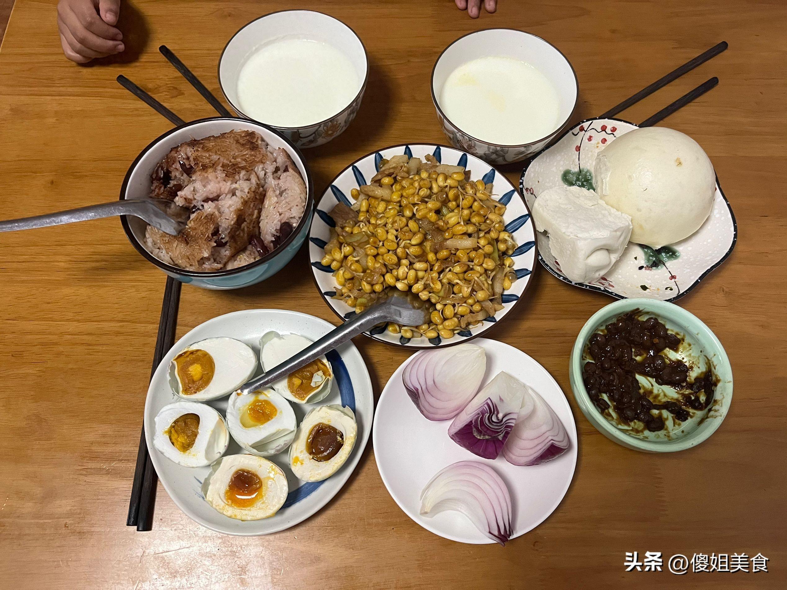 洋蔥蘸醬我可愛喫,一頓飯一個大洋蔥喫着很過癮。晚上我和婆婆都不喜歡喝湯,就給兩個孩子熱了包奶喝。雖然這頓晚飯看上去很簡單,但都是婆婆親手爲我們做的,我們喫着很可口也很香,能喫飽就可以了,再說了晚餐也沒有必須要喫的太過於油膩。