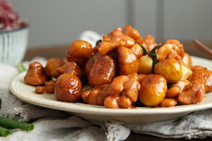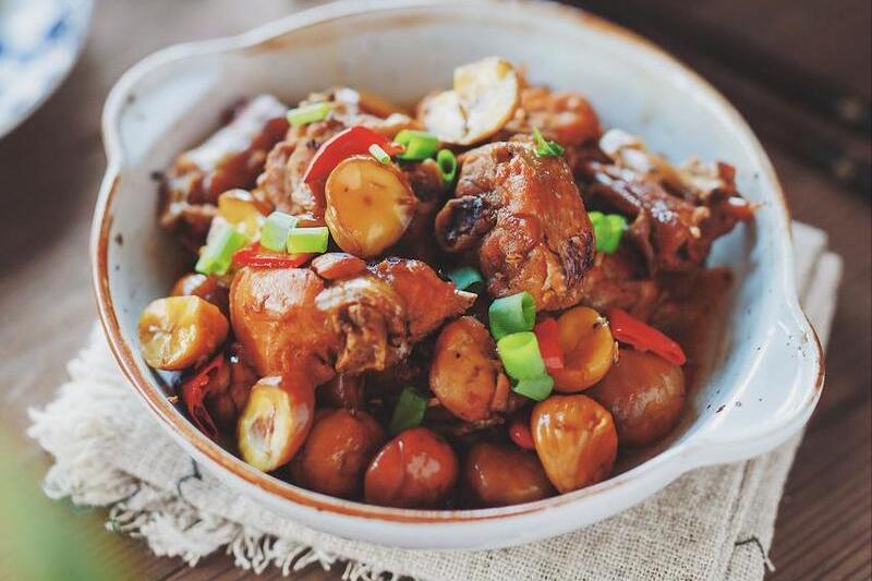 食材:板栗、雞肉、蔥姜、鹽、白胡椒粉、雞精、冰糖、生抽、料酒、蠔油、食用油
