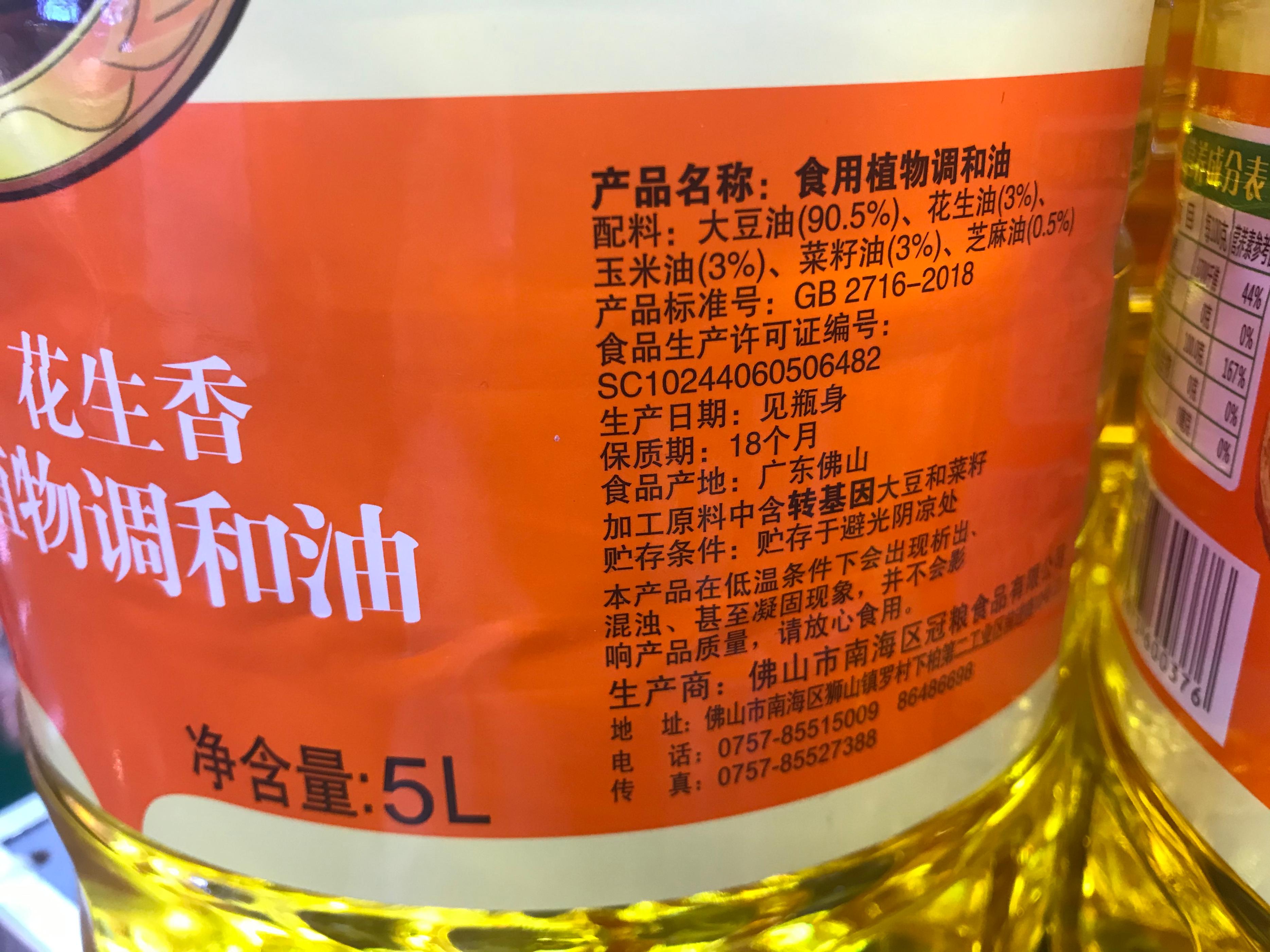 比較常見的有花生香植物調和油。它要比大豆油稍微貴一點點,別看名字起得比較高大上,還跟花生掛勾了。實際上這種調和油,90%都是轉基因大豆油,而花生油、玉米油和菜籽油各佔了3%,還有不到1%的芝麻油。還有些食用調和油,同樣是轉基因大豆油爲主,添加了葵花籽油和芝麻油,而花生油的比例僅爲0.5%。此外,便宜的橄欖調和油,也是這樣調製的比例。這樣看來,跟大豆油沒多大的區別。