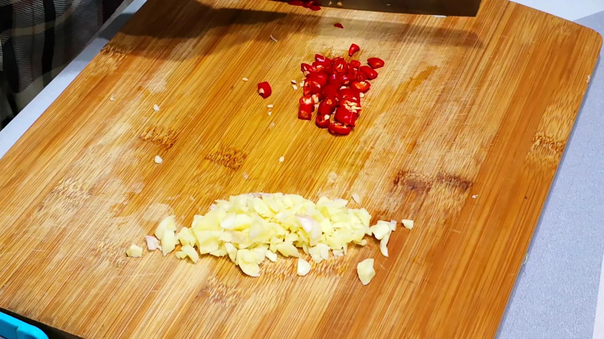3.然後準備適量的蒜末、薑末和小米辣圈放入盤中備用;