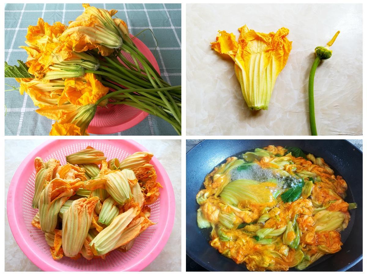 做法:1,南瓜花摘掉花萼,花柄從頂端處撕掉外皮,摘成合適的長度。