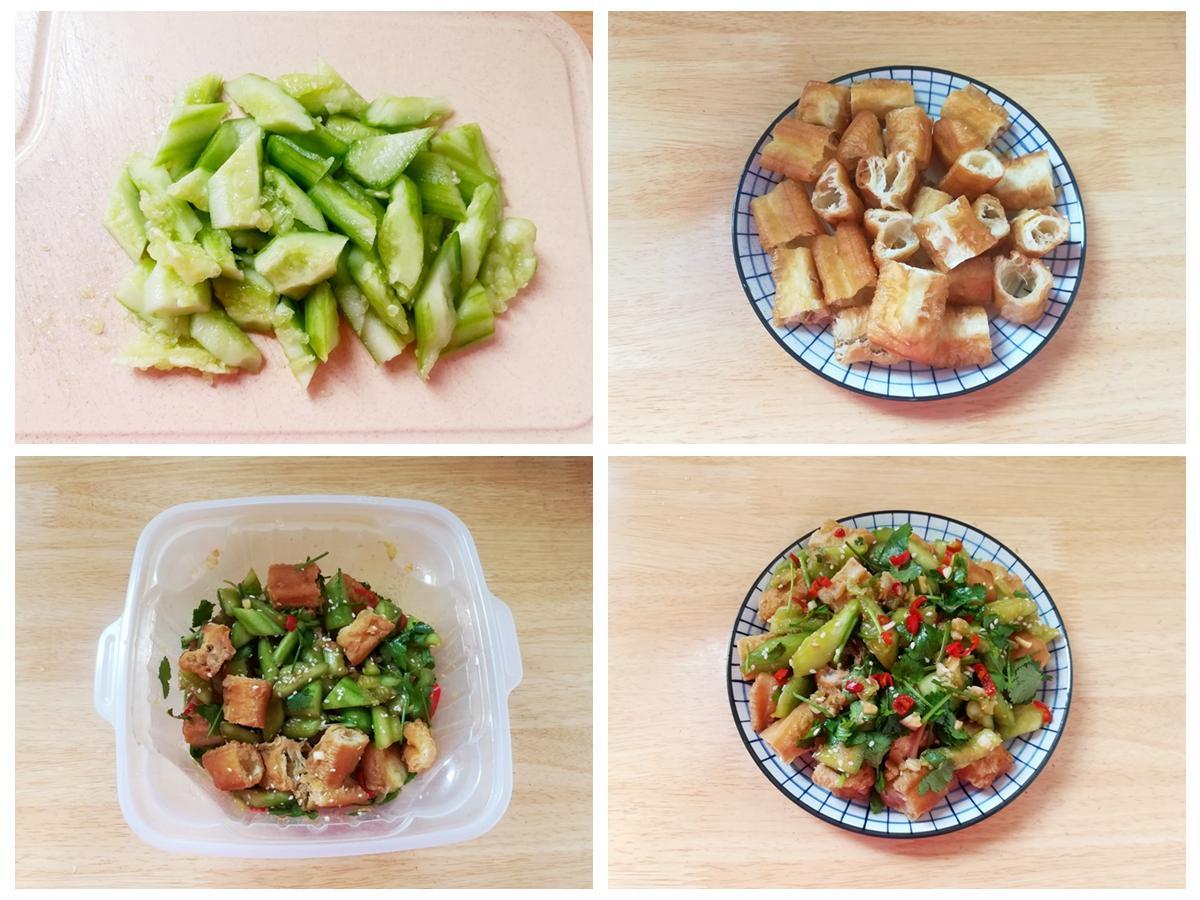 做法:1,黃瓜削皮清洗乾淨,拍扁後切成小塊,加少量的鹽醃製5分鐘,洗掉鹽分。