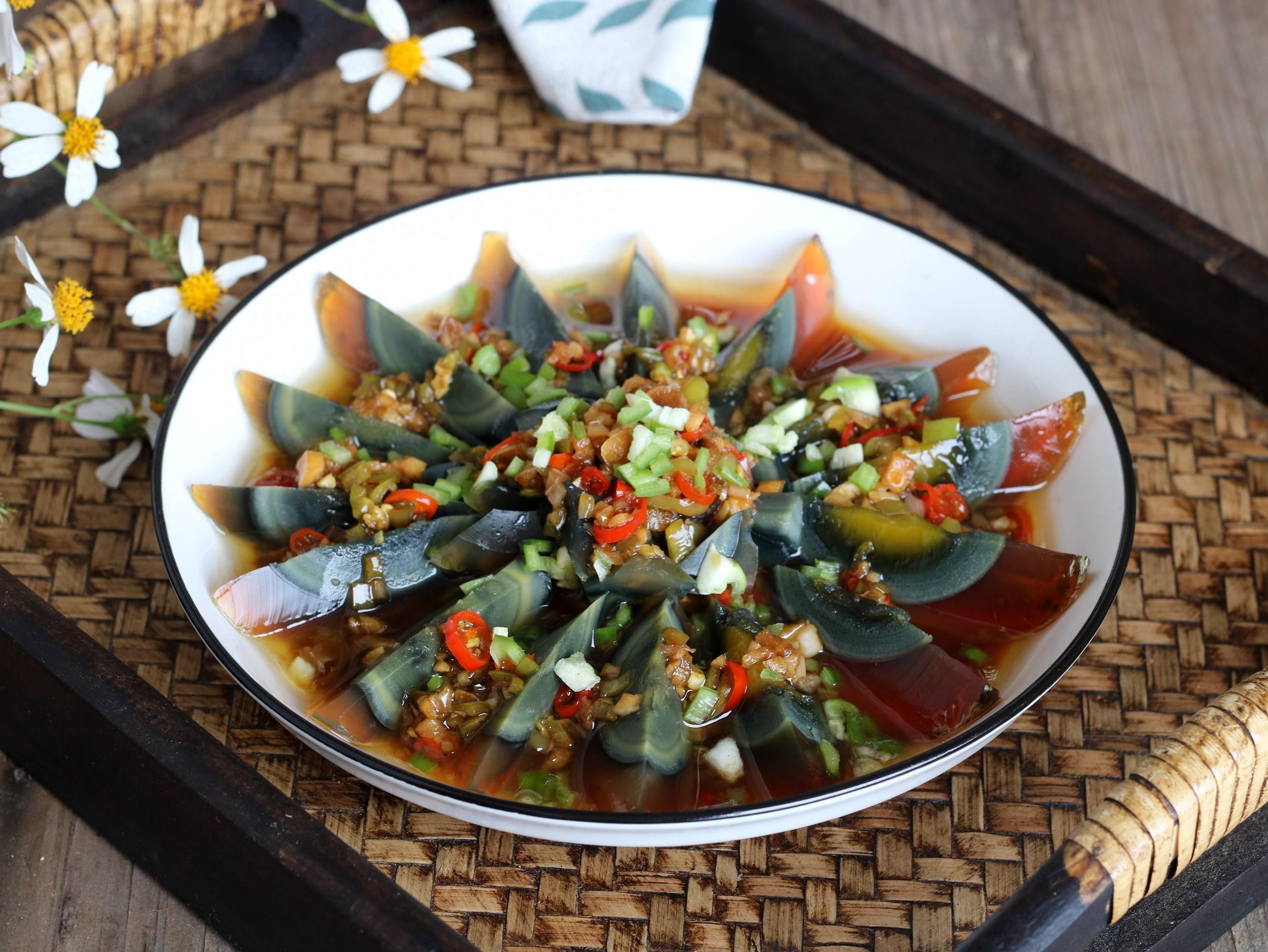 【涼拌皮蛋】,很多人喜歡的一道涼拌菜,把皮蛋擺成花開富貴的樣子,好喫又好看。