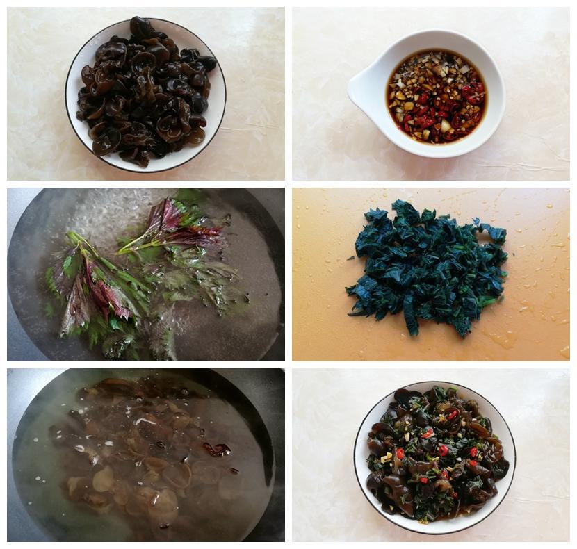 食材:木耳、紫蘇、大蒜、小米椒、低鹽生抽、鹽