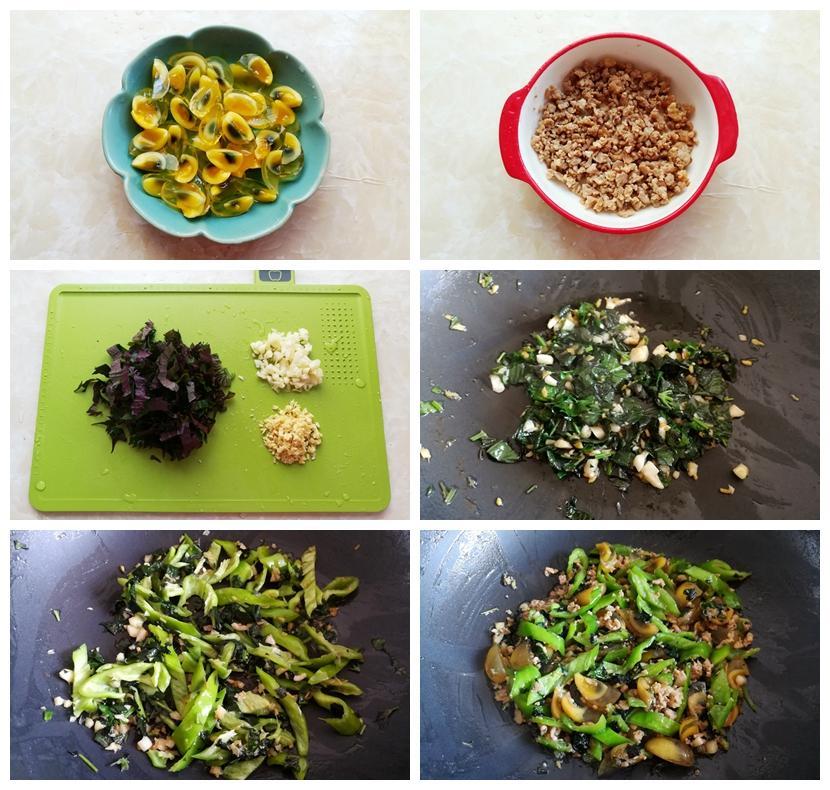 食材:變蛋、瘦肉、青椒、紫蘇、生薑、大蒜、食用油、鹽