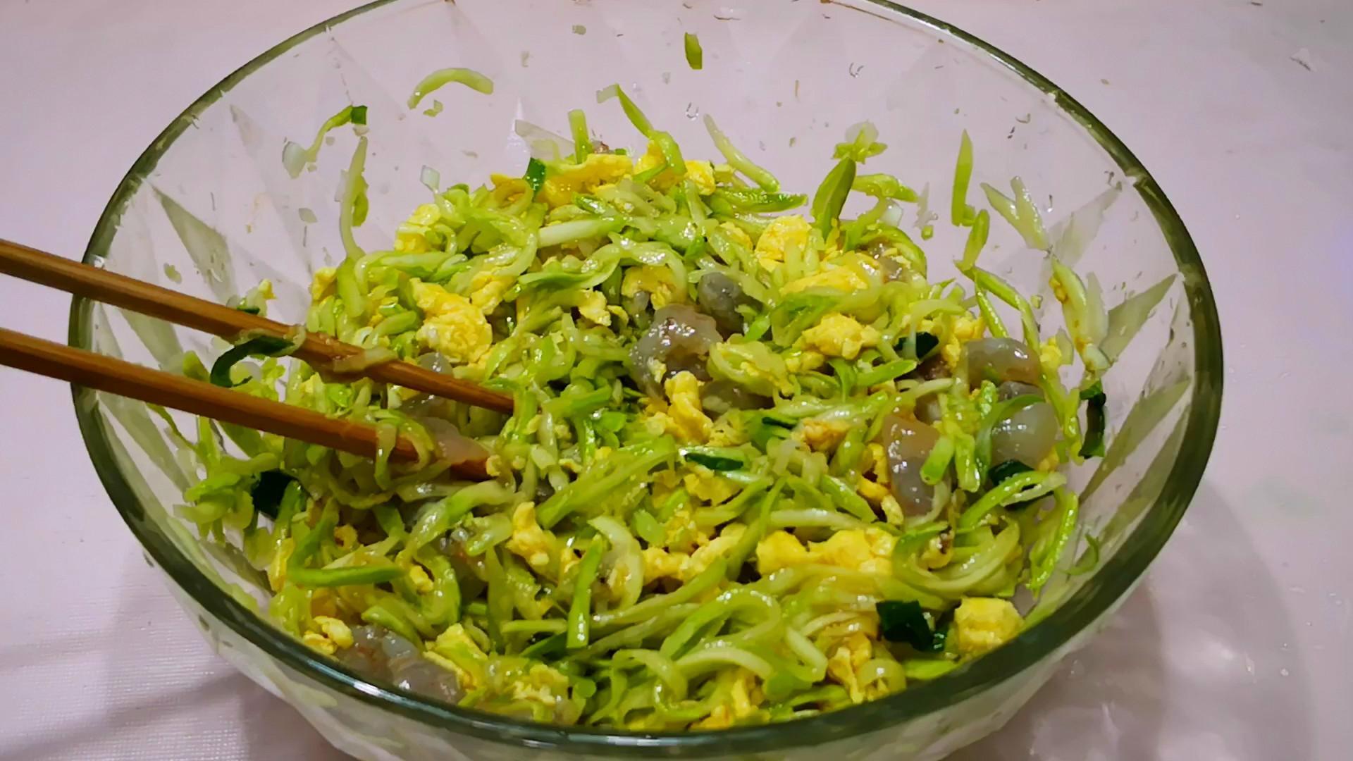 【西葫蘆蝦仁水餃】:西葫蘆1個 雞蛋3個 蝦適量