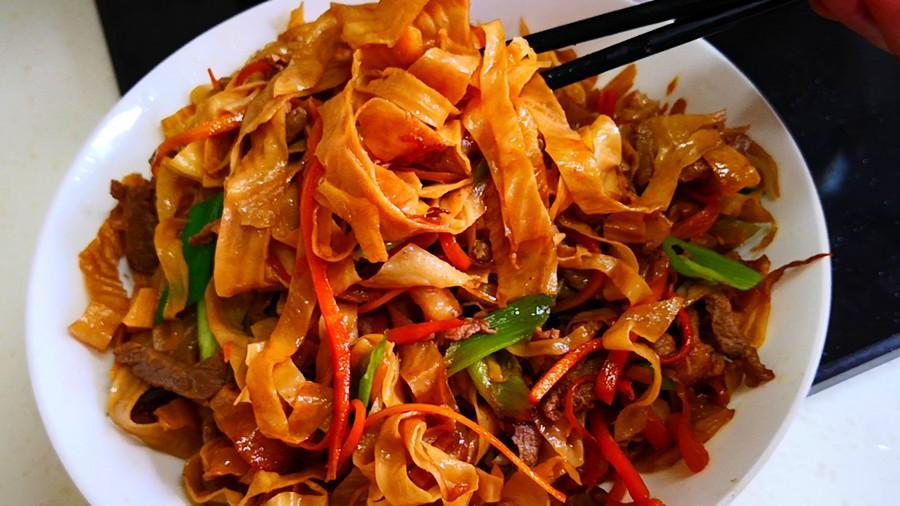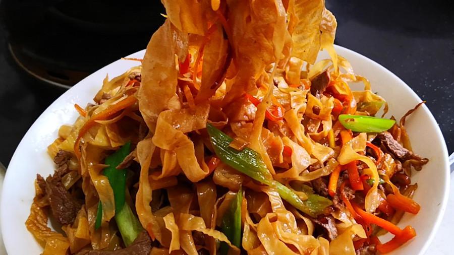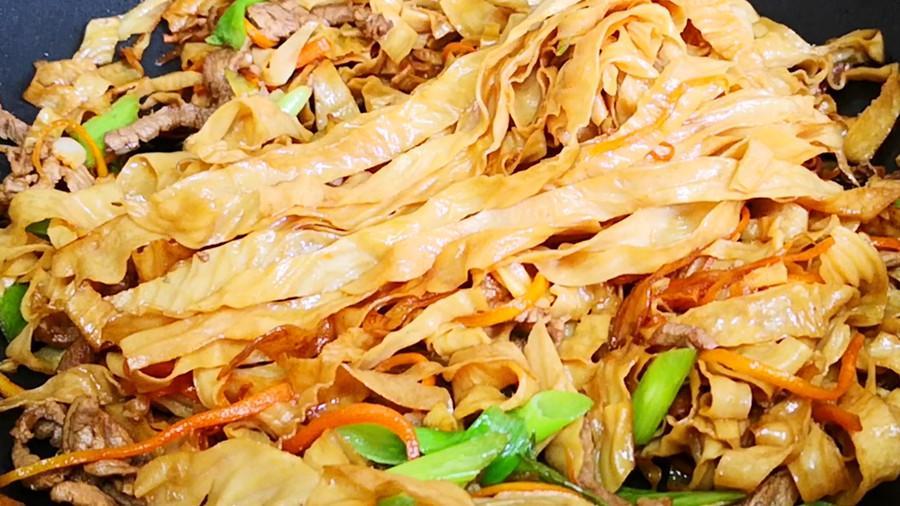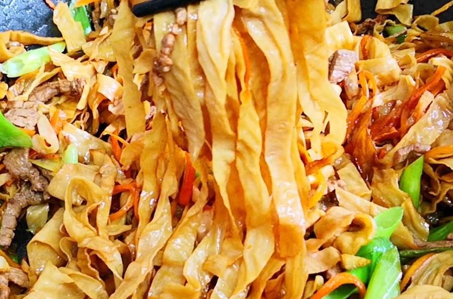 豆腐皮爲了方便運輸和保存都會曬乾後再賣,我們在購買時要注意,儘量挑選有豆香味、無異味、雜質少、有光澤、顏色呈麥黃色的幹豆腐皮;買回來的幹豆腐皮可以涼拌喫,也可以炒着喫,還可以涮火鍋喫,咋做都好喫,下面我就分享一下炒幹豆腐皮的家常做法,越嚼越香,好喫極了!