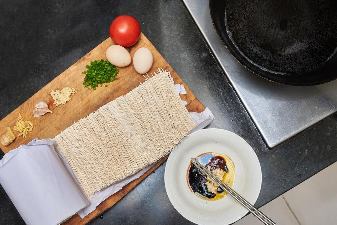 3、因此這裏就需要掌握技巧了,並不能把水徹底燒開,而是要燒到鍋底剛剛出現小氣泡,就可以下麪條了。因爲這個溫度,還沒有徹底沸騰,下入麪條不至於把麪條煮散,煮出來還是很勁道的、很順滑的,這是第1個要點。
