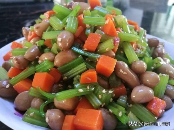 食材;芹菜1根,花生米適量,胡蘿蔔半個,鹽