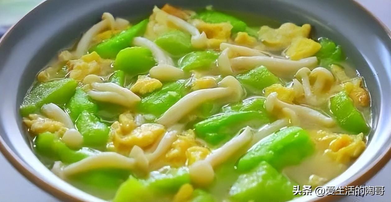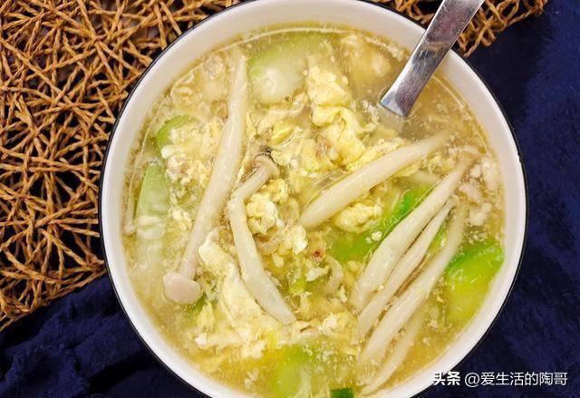 絲瓜搭配雞蛋,海鮮菇一起做湯喝,味道鮮香,美味好喝。