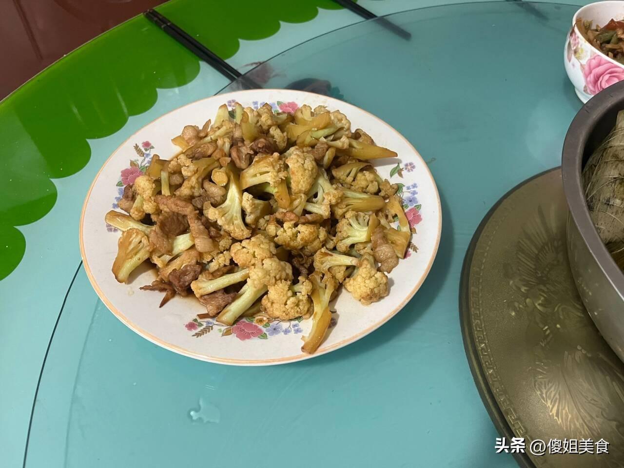 花菜現在便宜了,一塊錢,讓我說幾句,大姐炒的花菜味道可不咋的,沒有啥味道,像沒炒熟一樣,咱也不敢吱聲,就悶頭喫了,哈哈。