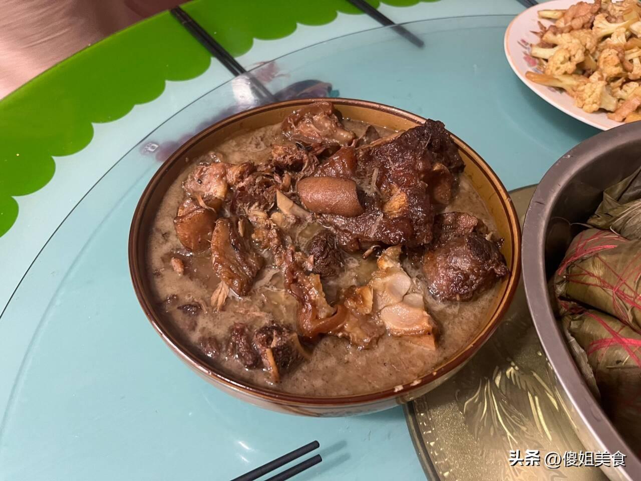 大姐把我媽的冰箱翻了個底朝天,把裏面囤了好久的肉、排骨都拿出來了,用高壓鍋給我們燉着喫了,別說大家的廚藝就是好,肉質軟爛入味,這一大碗都被我們搶光了,最後剩的湯汁都被我用饅頭蘸着喫光了。