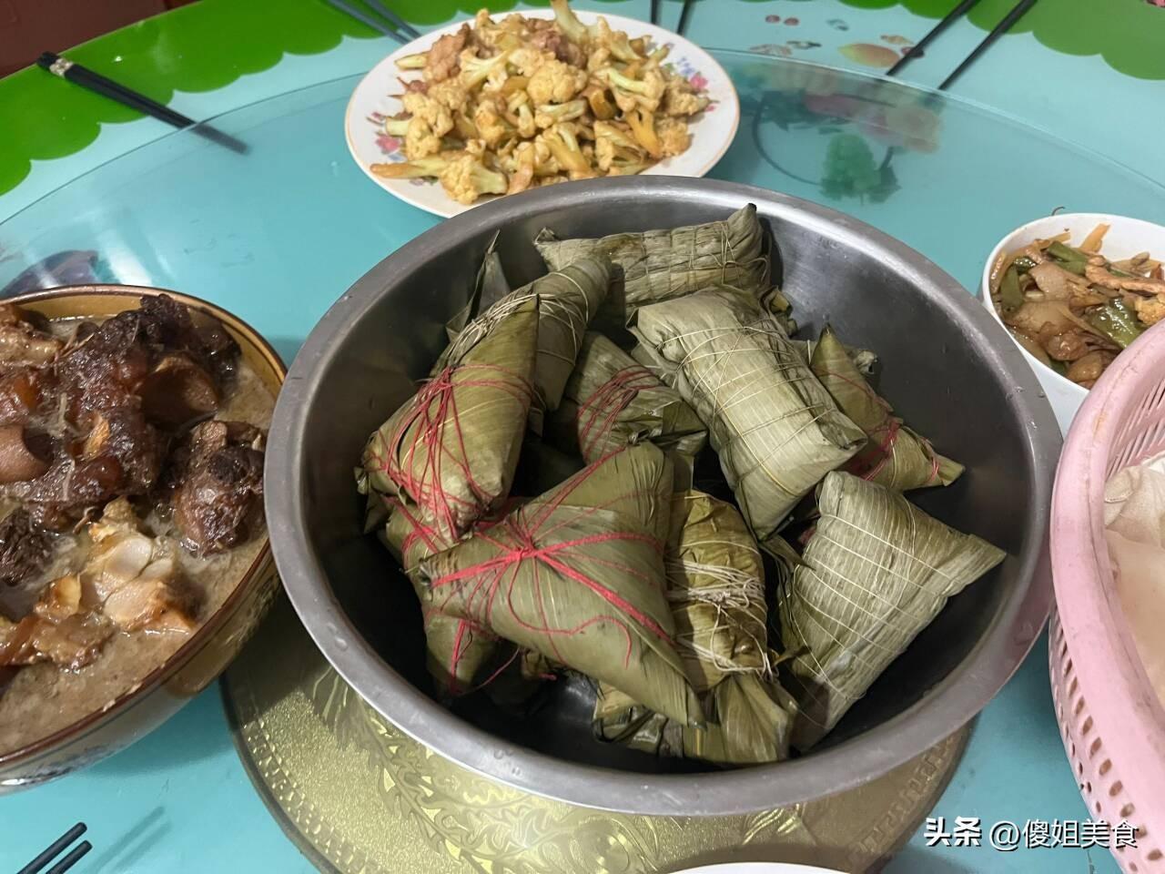 我大姐可是個勤快人,自己在家包了一些糉子給我們帶來的,有紅棗和肉餡的,我家兒子最喜歡喫肉餡的,問了一下大姐具體做法,回家也給兒子包。首先把糯米浸泡3個小時以上,在準備適量的五花肉切成塊,用耗油、香油、味極鮮和料酒醃一下入味,最後包成糉子就可以,繩一定要纏緊實,不然煮的時候會煮開,煮糉子時上面壓一個沉重的東西,避免糉子漂浮起來煮破,中火煮3個小時以上,糉子軟糯香甜賊好喫,尤其是肉餡糉子賊香。