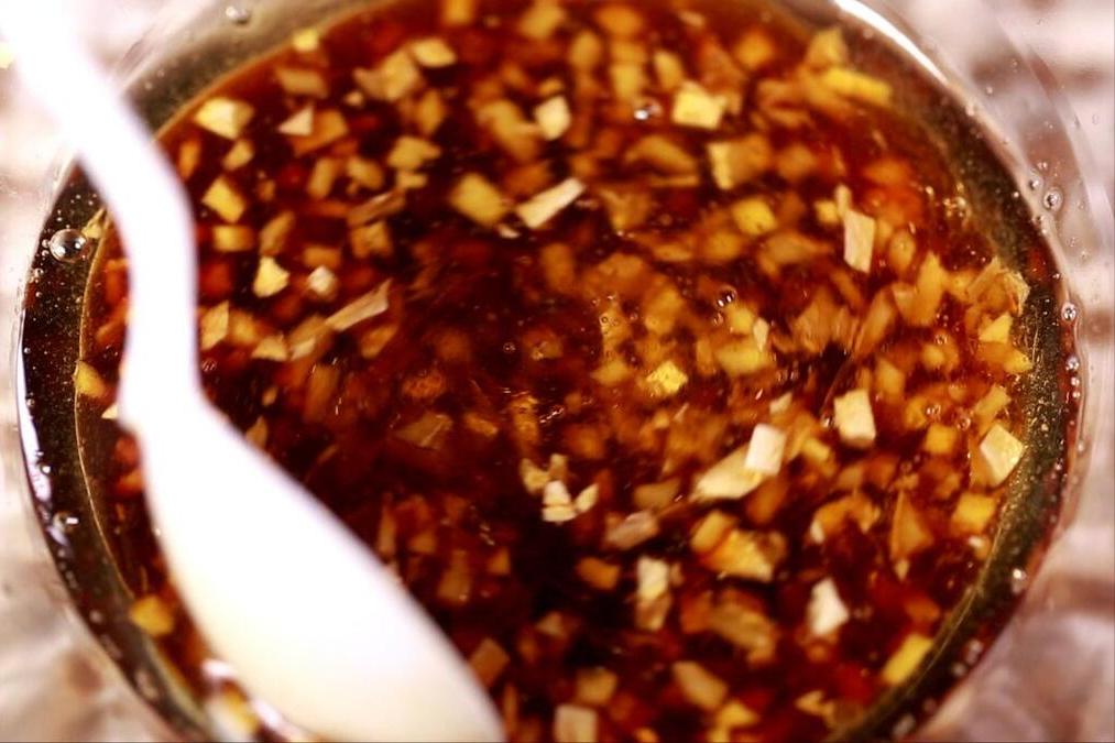 3、老抽不要放太多,不然顏色會很重,影響賣相。最後,往其中加上適量的辣椒油,辣椒油除了調味之外,還有一定的增香效果,倒進去以後繼續攪拌,充分攪拌均勻以後,就可以淋在蔬菜中啦,拌勻即可開喫。