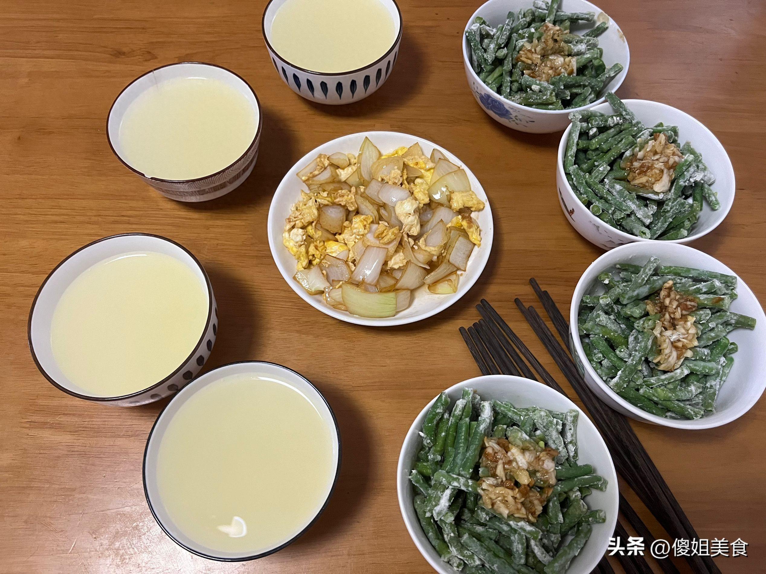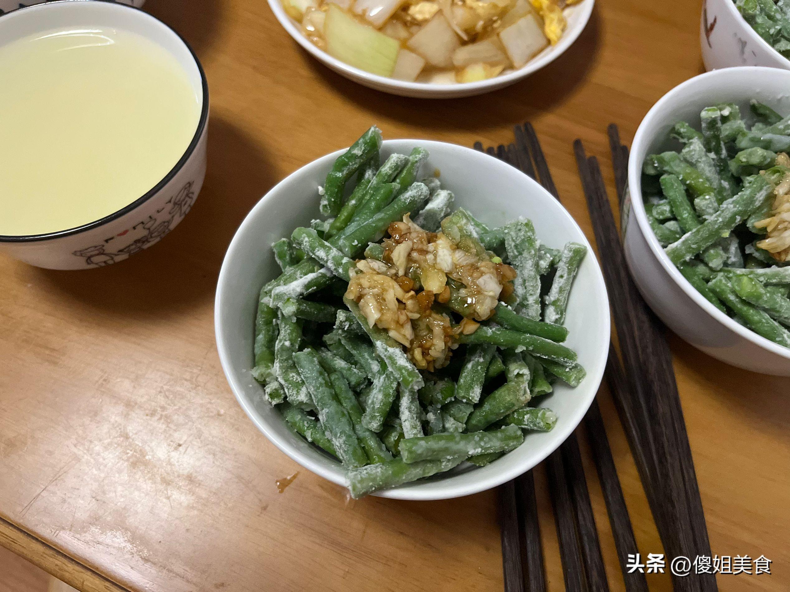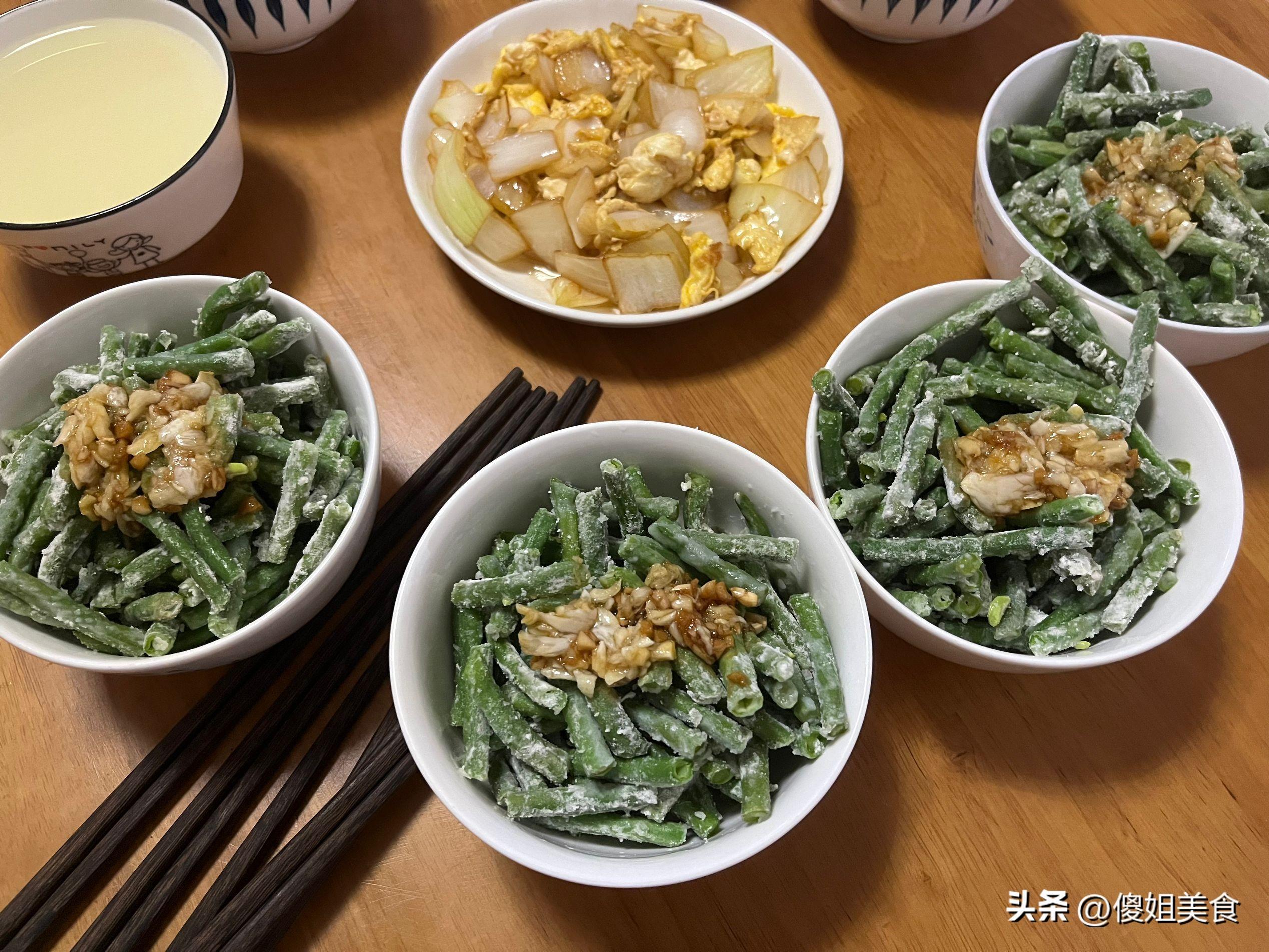 簡單豐盛的午餐就做好了,婆婆直誇我做的午飯好喫,連喫2碗蒸豆角。豆角這樣簡單一蒸又是飯又是菜,超好喫。大家有沒有喫過蒸豆角?